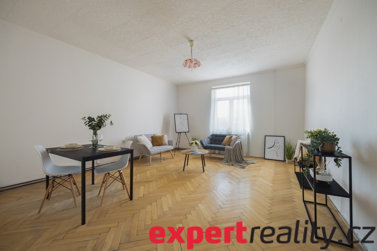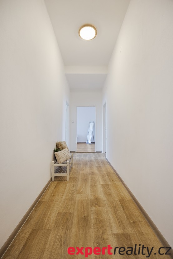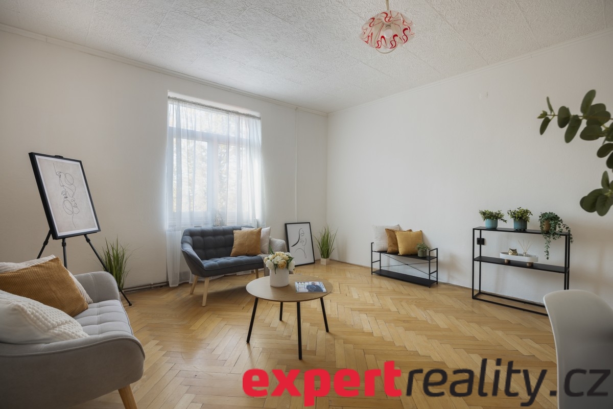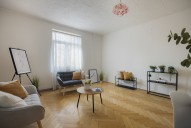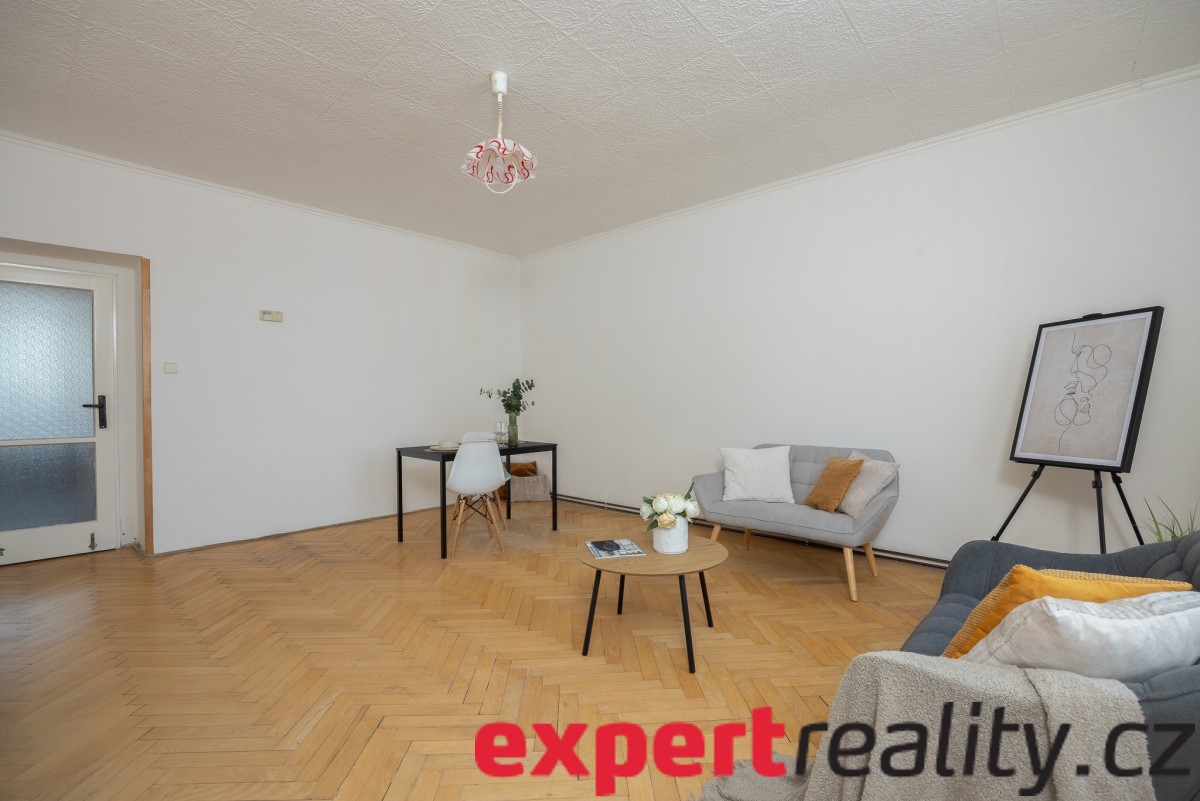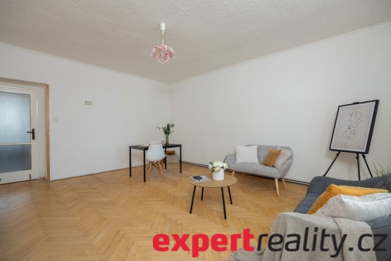 Podlahy v pokojích zdobí zachovalé parketová podlaha – jejich renovací můžete interiéru dodat moderní vzhled a styl. V ostatních částech bytu je na podlaze praktické lino. Součástí bytu je také prostorný sklep, ideální pro uskladnění věcí.