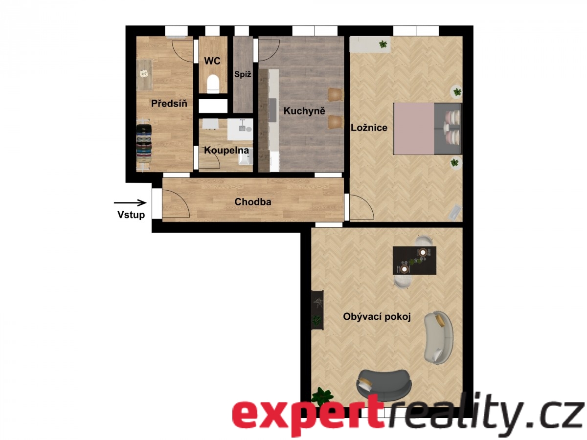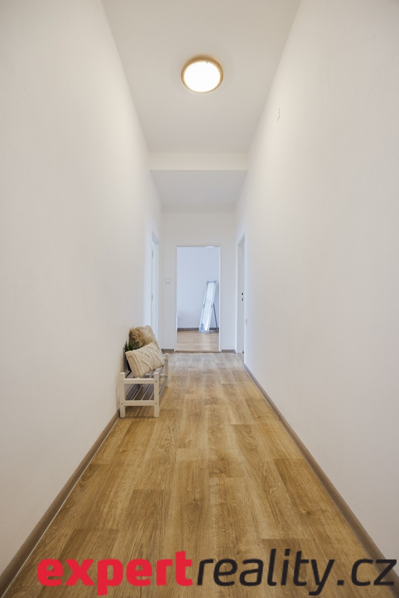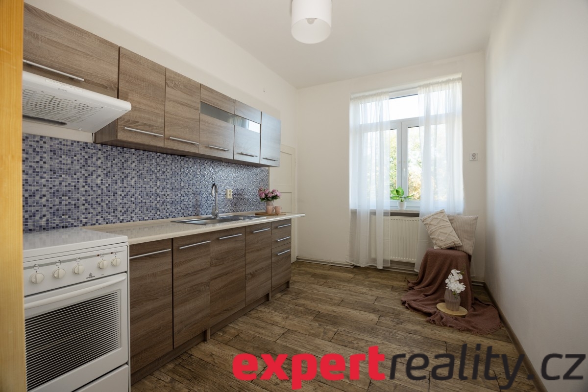 Podlahy v pokojích zdobí zachovalé parketová podlaha – jejich renovací můžete interiéru dodat moderní vzhled a styl. V ostatních částech bytu je na podlaze praktické lino. Součástí bytu je také prostorný sklep, ideální pro uskladnění věcí.