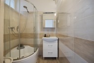 Byt je orientován na východ a západ, s výhledem na pěší zónu a do vnitrobloku domu.