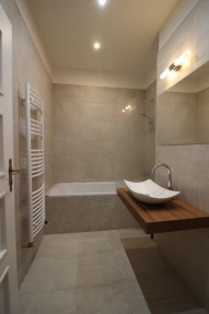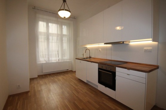 Byt je po kompletní rekonstrukci, nová kuchyňská linka s vestavenými spotřebiči (sklokeramická varná deska, horkovzdušná trouba, myčka), dva neprůchozí velké pokoje (22, 15 m2 a 20, 51 m2), moderní prostorná koupelna s vanou a designovým umyvadlem, samostatná toaleta s umyvadlem, předsíň a dvě komory přímo v bytě. K bytu dále náleží velký sklep o výměře 6, 5 m2.