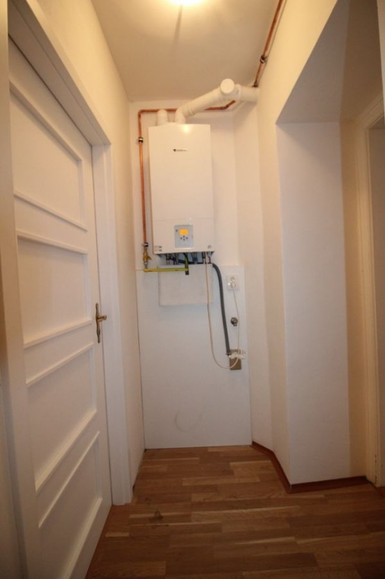 Ústřední vytápění radiátory s vlastním plynovým kombinovaným kotlem. Okna jsou špaletová, na podlahách v pokojích jsou nově vybroušené parketová podlaha, v kuchyni plovoucí podlaha, zrenovované interiérové dveře, nové rozvody elektřiny, plynu i vody.