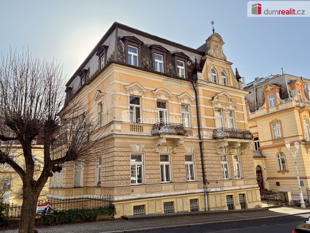 informace v realitní kanceláři. Dumrealit. cz Vám nabízí prodej bytu 2+1 (dispozičně upraven jako 3+1) v udržovaném stavu v ústředním centru m...ěsta Mariánských Lázní (ul. Karlovarská). Vlastnictví uvedené nemovitosti je osobní a plocha bytu činí 88 m². Byt je situován do zvýšeného mezaninu (tj. 1. nadzemní podlaží) patrového cihlového domu vystavěného v 2. polovině 19. století. Celkový stav domu je dobrý. Byt je velice slunný a působí teplým a útulným dojmem. Doménou bytu jsou původní štukové stropy. Součástí domu je společná zahrada, kterou je možné využívat. Parkování je možné bezprostředně u objektu (tzv. rezidentní karta). Veškerá potřebná občanská vybavenost se nachází v docházkové vzdálenosti v okolí. Městský SKI areál se nachází 400 m od objektu. Promenádní Kolonáda se Zpívající fontánou je vzdálena 300 m od objektu. V bezprostředním sousedství objektu se nachází lázeňský les, Goethovo náměstí (100 m od objektu), Městské muzeum, hotel Esplanade, kavárny, lázeňské domy, promenádní parky, léčivé prameny apod. Byt je k dispozici novému nabyvateli ihned po dohodě s majitelem. V případě, že hledáte byt v lukrativní lokalitě, mohu Vám tuto nemovitost jen doporučit. Byt je vhodný pro vlastní využití, popř. jako investiční příležitost k dlouhodobému nájmu. Mariánské Lázně jsou od roku 2021 na seznamu světového kulturního dědictví UNESCO a jsou klimatickými lázněmi. Případné vyřízení hypotečního úvěru je samozřejmostí. Doporučujeme. Ev. číslo: 650429. Energetický štítek: G