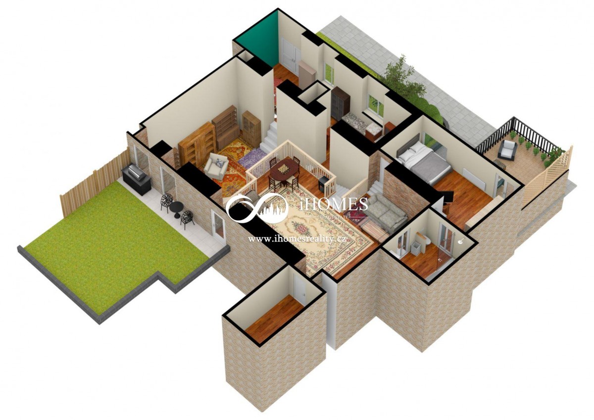 Byt. jednotka se nachází v přízemí a 1patro má dvě urovně. podlaží se zahrádkou pětipodlažní budovy . Historická budova z roku 1891 prošla v roce 2006 rekonstrukcí, kdy byla navíc rozšířena o moderní část a nachází se v útulné udržované zahradě.