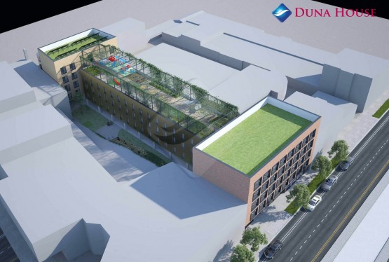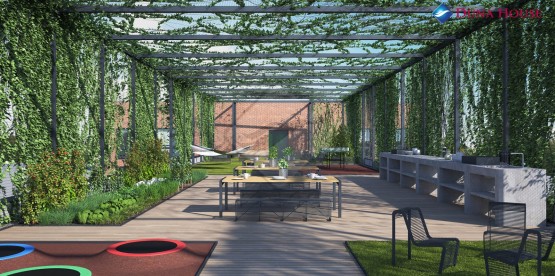 Dům bude disponovat velkou, společnou terasou na střešních prostorách domu a výtahem pro 6 osob. Venkovním i podzemním parkovacím stáním s garážovými vraty s dálkovým ovládáním a automatickým zavřením po vjezdu auta. .