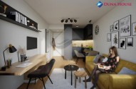 Byt bude kompletně vybaven kuchyňskou linkou s veškerými spotřebiči a nábytkem v pokoji vyrobeným na míru, s venkovními žaluziemi a rekuparací.