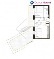 Byt bude kompletně vybaven kuchyňskou linkou s veškerými spotřebiči a nábytkem v pokoji vyrobeným na míru, s venkovními žaluziemi a rekuparací.