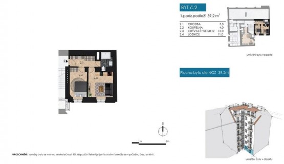 2+kk, 39 m2, cihlová, OV, 1. podlaží