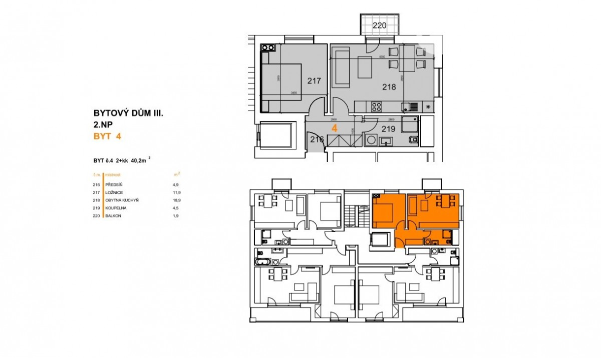 2+kk, 40 m2, cihlová, OV, 4. podlaží