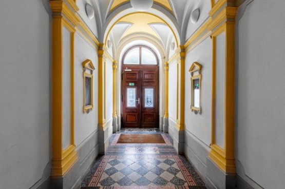Prodej zařízeného bytu 2+kk, 40m v 2NP (druhé nadzemní patro) reprezentativního cihlového domu včetně výtahu v ulici Moravská na pražských Vinohradech.