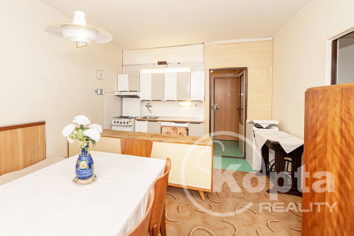 Kopta reality zajišťuje prodej bytu 2+kk o celkové ploše 42 m2 a to v 1. patře zatepleného, panelového domu v Nýřanech, okr. Plzeň - sever. V roce 2010 proběhla ...revitalizace domu - zateplení fasády, nová plast. okna, výtah, chodby. Vstup do bytu zajišťují masivní bezpečnostní dveře. V jednotce jsou 2 pokoje o ploše 16. 56 m2 (kuchyně + obýv. pokoj ) a 18. 37 m2 (pokoj nebo ložnice). Vybavení bytu je původní, včetně kuch. linky a koupelny s vanou. Koupelnové jádro je taktéž púvodní. Na podlahách jsou koberce, linoleum. V kuchyni je k dispozici plyn. sporák, lednice, pračka. Byt je situován na jižní stranu. Vhodný byt na investici, ideální malometrážní dispozice pro 1 - 2 osoby, či pár s dítětem. Díky bezbariérovému přístupu skrze nový výtah, možno využít i pro imobilní osoby, seniory . . . apod. V domě se nachází kotelna. SVJ má naspořeno přes 4 mil Kč. Náklady na byt činí 2. 975 včetně fondu oprav, otopu, vody, TUV - teplé vody. Zvlášt se hradí plyn (vaření) a elektřina (svícení, spotřebiče).