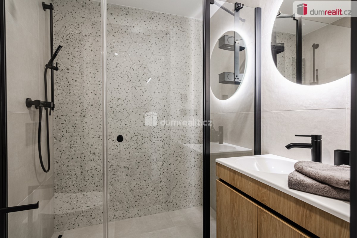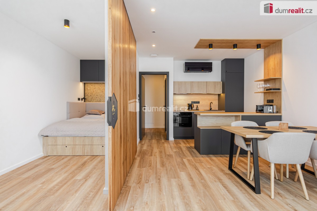 Cena včetně právních služeb a provize RK. . Dumrealit. cz Vám nabízí prodej prémiového horského apartmánu (bytové jednotky) o dispozici 2+kk v Abertamech v Krušných horách. Sty...lový apartmán , , Třezalka" o celkové velikosti 44, 4 m² se nachází v novém bytovém domě 17 BYLIN, v 3. patře včetně výtahu. Dispozice apartmánu zahrnuje prostorný obývací pokoj s lodžií a kuchyňskou linkou na míru s vestavěnými spotřebiči, ložnici, chodbu, koupelnu se sprchovým koutem a sociální zařízení WC. Apartmán je nově a exkluzivně zařízen, připraven k okamžitému nastěhování, bez jakýchkoliv dalších investic. Je vybaven systémem Loxone. K apartmánu náleží parkovací stání před domem, lyžárna se skřínkou pro lyžařské vybavení, vyhřívané sušáky na boty, kolárna se skříňkou s možností nabíjení baterií, prádelna se sušičkou a zahradní tábořiště ke společnému setkávání. Dům Sedmnácti Bylin má funkční spravované SVJ složené ze skvělých majitelů, nabízí nadstandardní zázemí včetně finské sauny a odpočinkové zóny, je situován na hraně náměstí a Krušnohorské magistrály. Upravené cyklostezky, turistické trasy nebo nedaleké lyžařské areály Plešivec, Boží Dar a Klínovec vám umožní bohaté celoroční sportovní vyžití. Městečko Abertamy ležící jen 15 km od Karlových Varů. Apartmán sousedí na patře s apartmánem , , Šalvěj" a je zde možnost koupit oba tyto apartmány (možnost jednání o ceně). Tuto nemovitost lze hradit hypotečním úvěrem, který Vám rádi pomůžeme vyřídit v našem hypotečním centru. Nezmeškejte možnost vlastnit tento jedinečný apartmán! Kontaktujte nás pro více informací. Ev. číslo: 649966. Energetický štítek: A