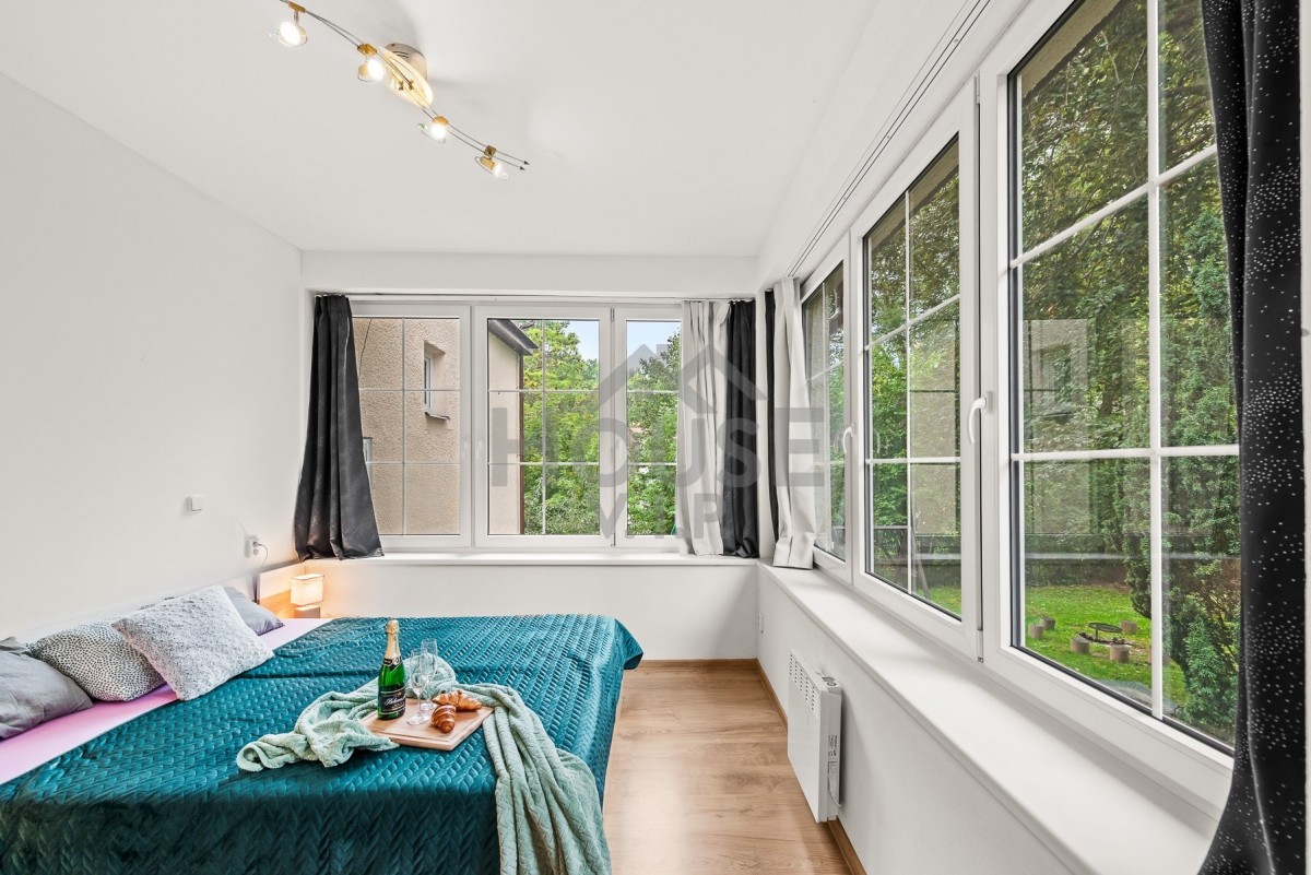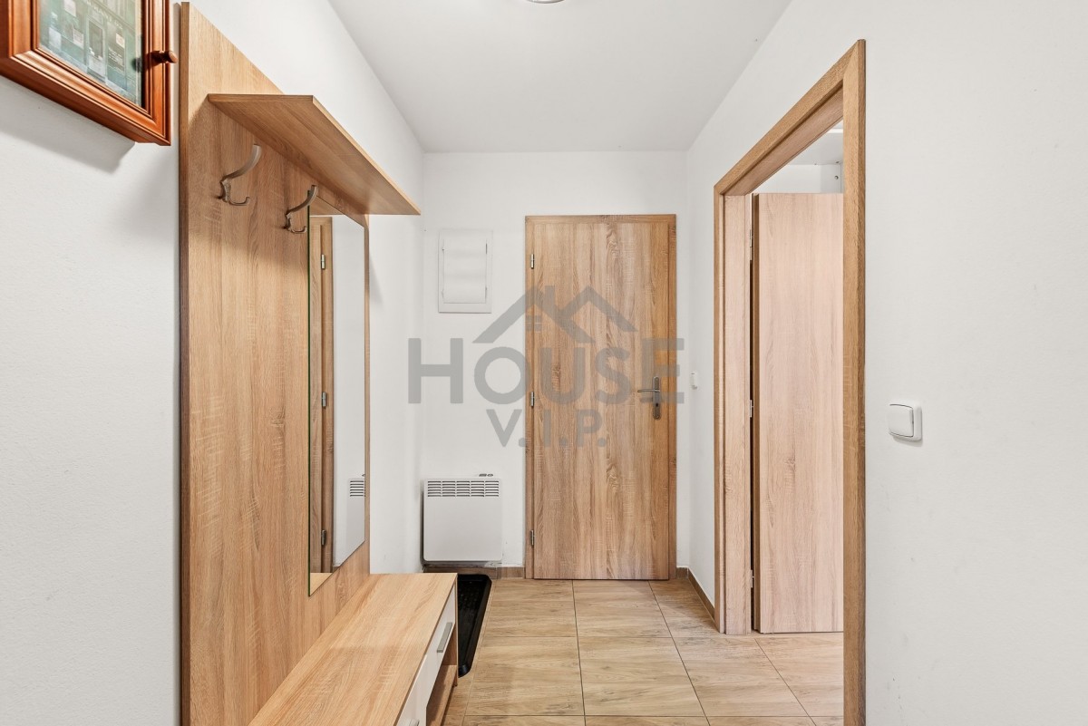Vchod do apartmánu je koncipován ze zadní části objektu, což zaručuje klid a soukromí. Jehož dispozice zahrnuje předsíň, koupelnu se sociálním zařízením a vanou, prostornou obývací místnost s kuchyně a prostorná ložnice.