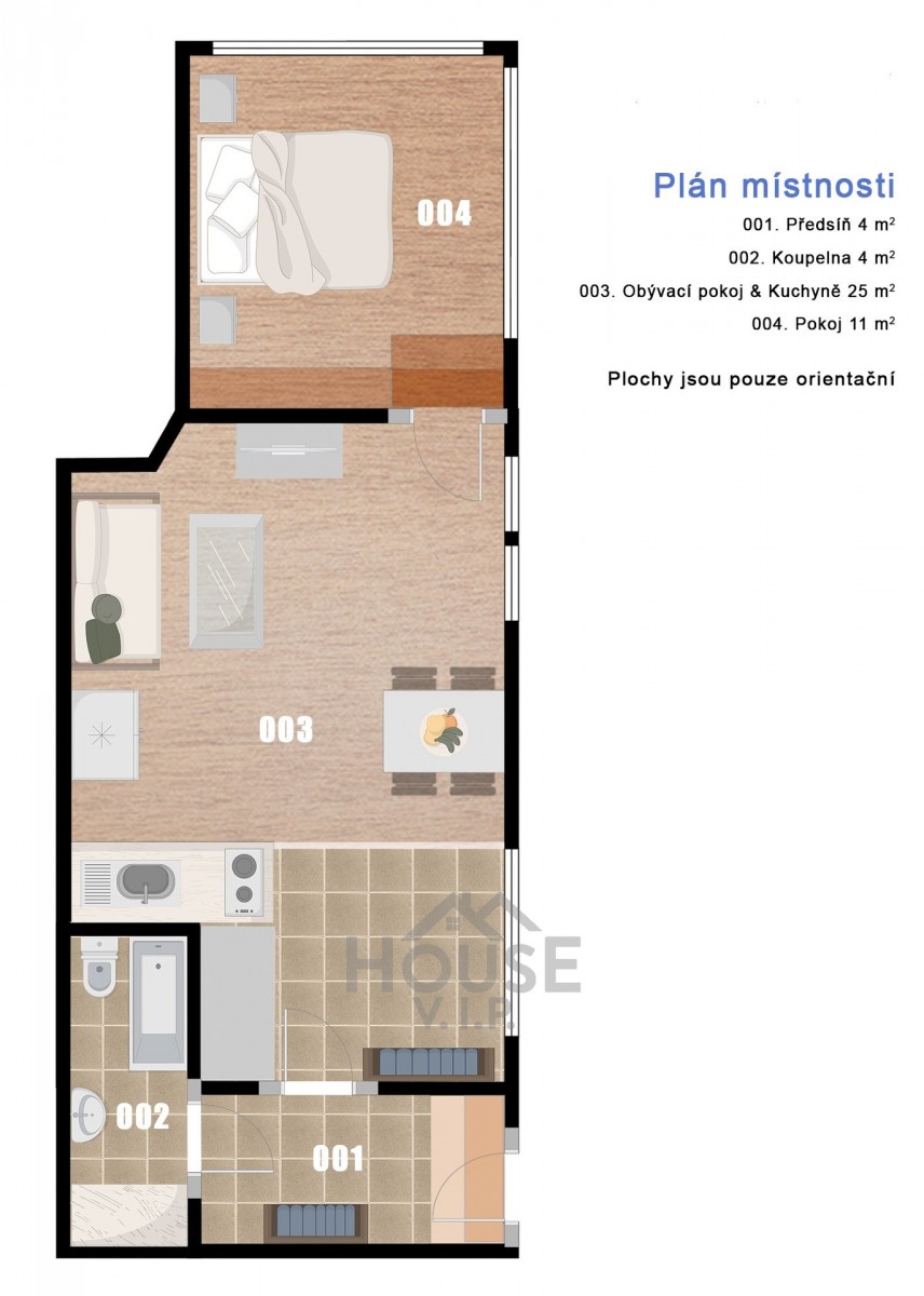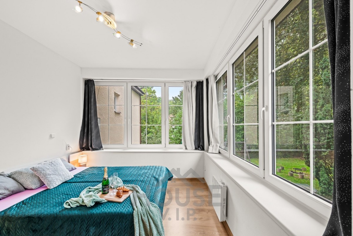 Vchod do apartmánu je koncipován ze zadní části objektu, což zaručuje klid a soukromí. Jehož dispozice zahrnuje předsíň, koupelnu se sociálním zařízením a vanou, prostornou obývací místnost s kuchyně a prostorná ložnice.
