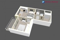 Byt 2+kk, ...39 m2 velký, sestávající ze vstupní předsíně, koupelny s toaletou, z ložnice a obývacího pokoje s kuchyňským koutem a balkonu, situovaný ve 3. NP (třetí nadzemní patro) nového viladomu.
