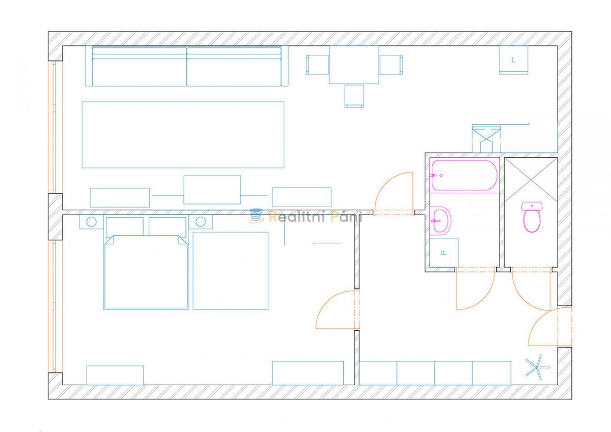 2+kk, 44 m2, panelová, OV, 4. podlaží