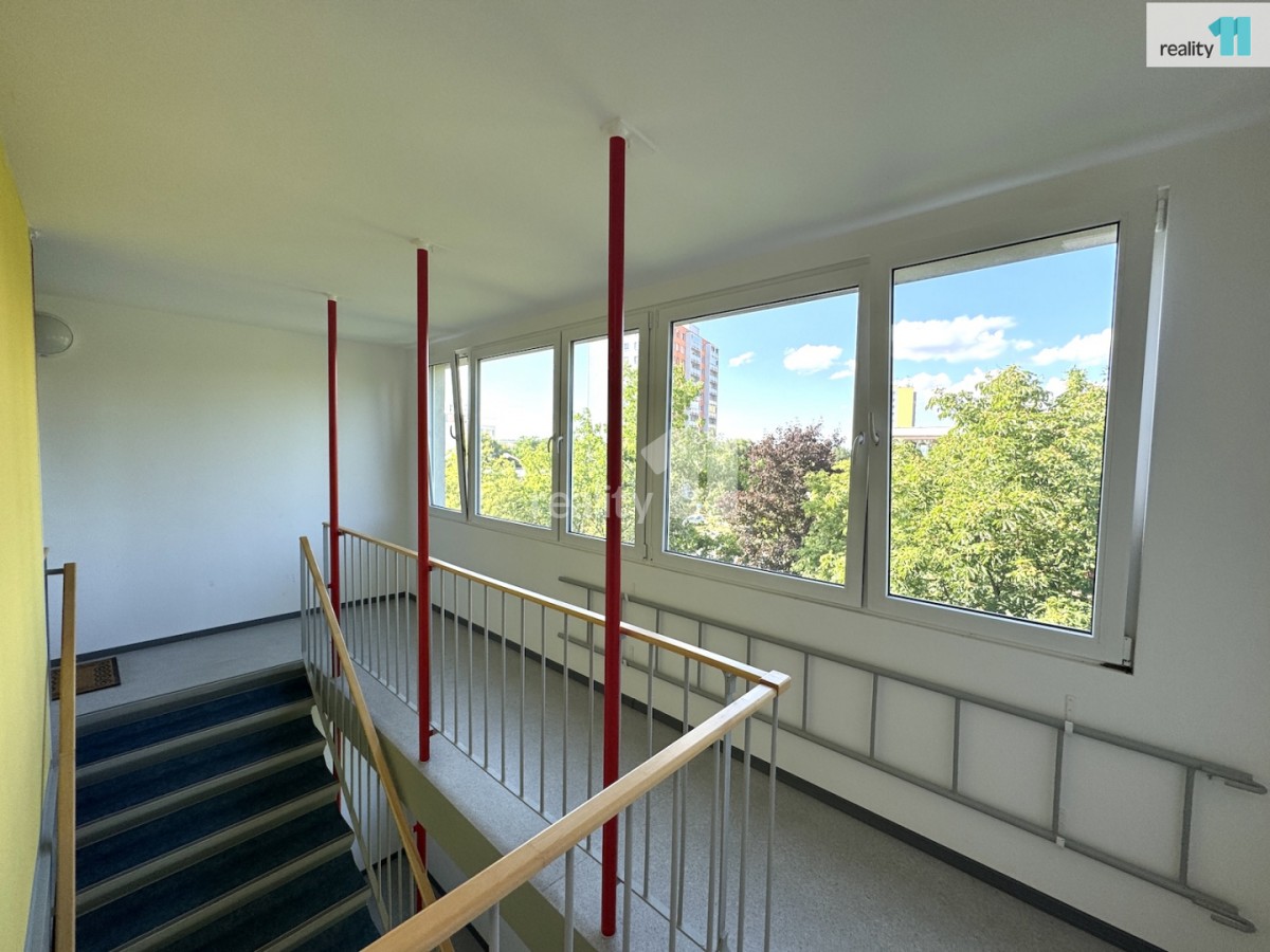 Byt, jehož obytná plocha činí 39, 32 m², je dispozičně rozdělen na vstupní chodbu s velkými zrcadlovými skříněmi, ze které se vchází do ložnice (10 m²), koupelny s malou vanou, samostatné toalety a obývacího pokoje spojeného s kuchyňským koutem, ze kterého se vchází na slunnou, zasklenou lodžii, s velice příjemným výhledem (7 m²). Jádro je vyzděné, praktická kuchyňská linka (lednice s mrazničkou, plynová varná deska, trouba), kvalitní plastová okna, nové rozvody, podlahy kombinované. Byt je celkově velice světlý, útulný, udržovaný, ideální jako startovací pro mladý pár a nebo na investici, protože se vždy velice dobře pronajímal za tržní nájemné. K bytu také patří komora na patře, vhodná na uložení sportovního náčiní a dalších věcí. Dům je zrekonstruovaný (zateplení, fasáda, plastová okna, zasklené lodžie), s ideální polohou v klidné části Braníka, přesto velice rychle dostupný jak na Smíchov, tak na Kačerov.