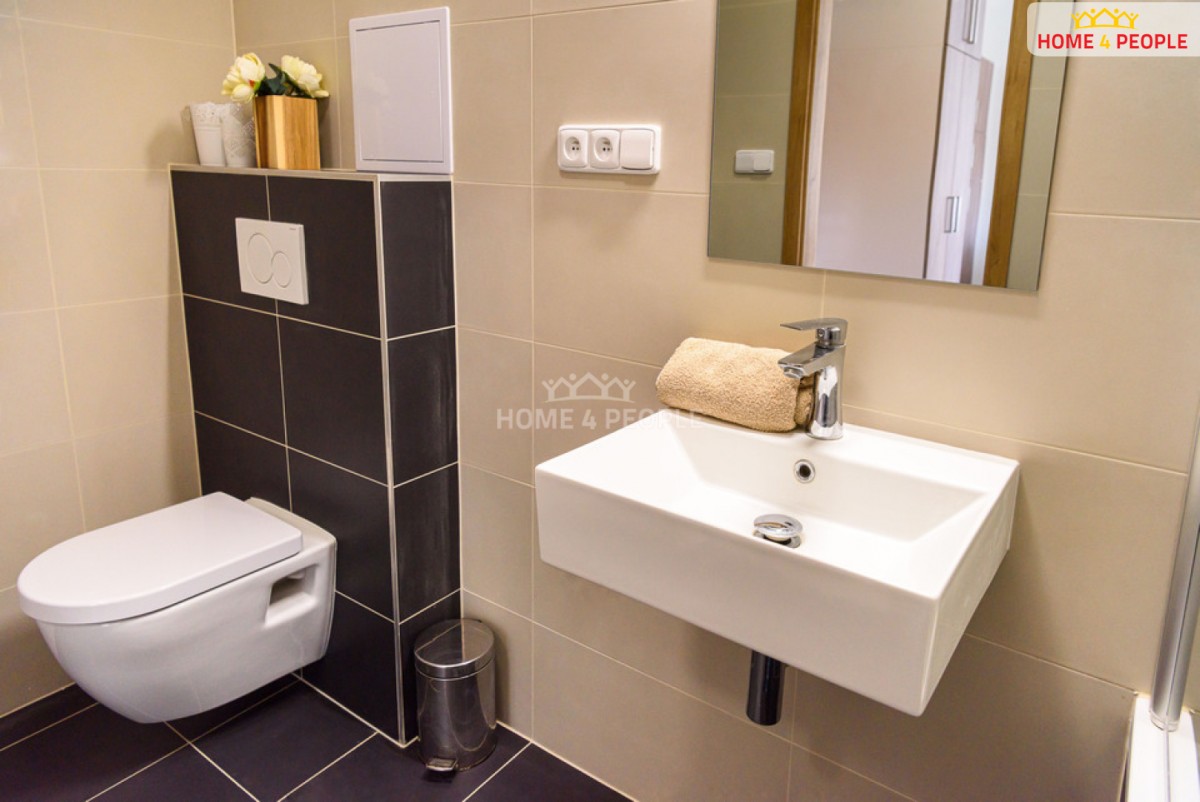 Kompletní cena včetně odměny RK a právního servisu. . Zprostředkujeme Vám výhradní prodej moc hezkého zařízeného apartmánu o velikosti 2+kk o celkové podlahové výměře 46 m² s te...rasou a sklepem v budově resortu Všemina u Slušovic. Dispozice apartmánů tvoří zádveří s chodbou, samostatná ložnice, obývací pokoj s kuchyňskou linkou a jídelním koutem, 2 krát vlastní koupelna a sociální zařízení WC, terasa či balkón a sklep. Apartmány jsou kompletně vybaveny vlastním sociálním zařízením, kuchyní s kuchyňským koutem a nábytkem na míru. Apartmán má 3 balkony orientované na jihozápad s moc hezkým výhledem na jezero. V budově resortu se nachází prostorná restaurace se salonky pro pořádání oslav a školení, dále dětská herna, bowling, tělocvična, whirlpool, sauna a krytý bazén. Teplo a teplou vodu do budovy dodává centrální kotelna s vlastním měřením na vstupu do objektu. Každý apartmán má samostatné měření elektřiny, teplé a studené vody. S postupným obydlením apartmánů stále roste hodnota celého objektu. Lokalita se stává více oblíbenou, jste - li noví obyvatelé, nacházíte na Všemině dnes tolik žádaný klid, pohodu i sportovní vyžití a zábavu. Během pobytu navíc dýcháte čistý vzduch. Celý mix tvoří cenný soubor komodit, jejichž sociální i finanční hodnota stále roste. Okolí a celý resort Všemina každoročně nabírá na atraktivitě, během minulých let zde vzniklo nové lanové centrum, wellness a relax centrum. V budoucnu se plánují další investice na rozšíření aktivit areálu, dostupných i v zimních měsících (v blízkosti dojezdu do 10 - 20 minut jsou 4 zimní střediska. Platba za služby a energie probíhá obdobně jako u klasického bydlení. Základní měsíční inkaso zahrnuje zálohy na dodávku tepla, studené i teplé vody, fond oprav, náklady na společnou elektřinu a povinné pojištění budovy, služby domovníka a správy domu, provoz a servis výtahů, odvoz odpadu, recepce a krytého bazénu. Nastěhováním se do nového apartmánu vaše pohodlí teprve začíná. Zajistíme výhodné financování. Ev. číslo: 28199. Energetický štítek: B (123 kWh/m2/rok).