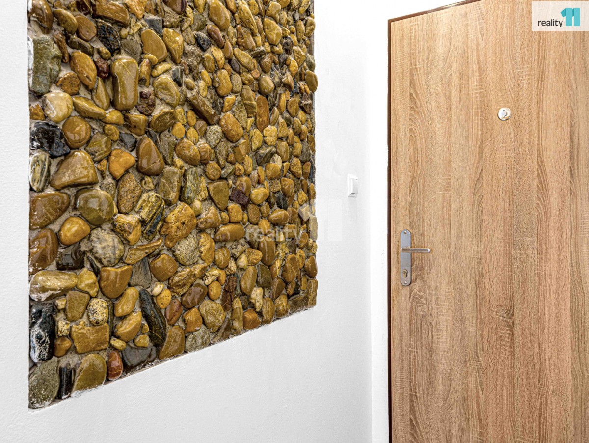 Samotný byt je po rekonstrukci – koupelna a toaleta jsou společně, s moderním obkladem a sprchovým koutem. Na chodbě je prostorná vestavěná skříň, která poskytuje dostatek úložného prostoru. Obývací pokoj je propojen s kuchyňským koutem a vstupem na prostornou lodžii s příjemným výhledem do prostoru mezi okolní domy.