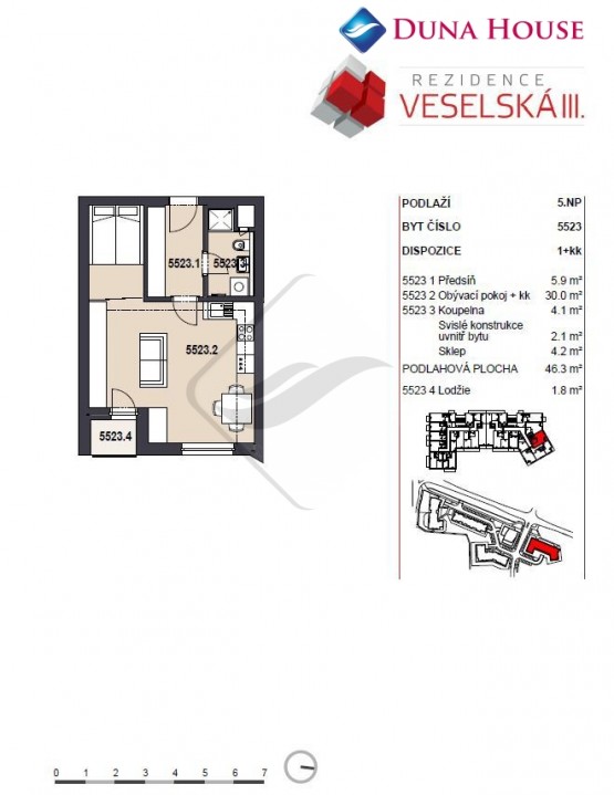 Nabízíme k prodeji velice hezký a příjemný byt o dispozici 2+kk, 42, 1 m2 velký s lodžií 1, 8 m2 ve III. etapě nového projektu Rezidence Veselská ve velic...e vyhledávané lokalitě Prahy 9 v Letňanech. Byt leží v 5. NP (páté nadzemní patro) cihlové novostavby.