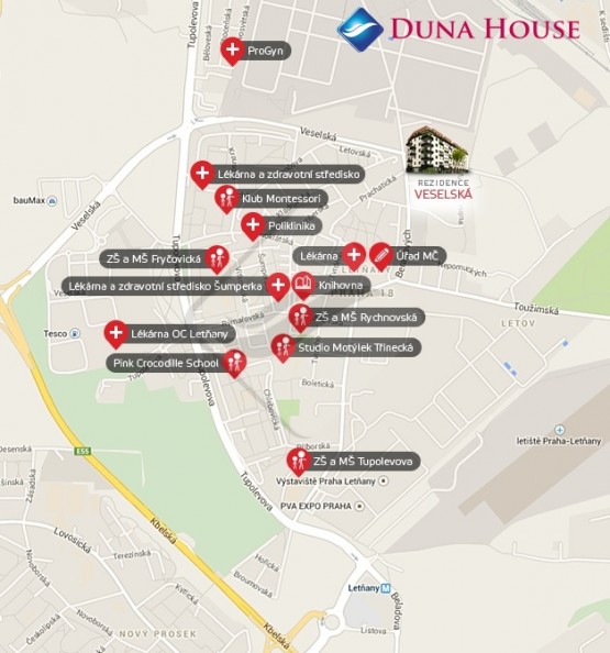 Tato lokalita se stává stále více oblíbenější pro jednotlivce, páry i rodiny s dětmi. Ve velice rychle se rozvíjející části Prahy 9 v nynější době naleznete veškerou občanskou vybavenost, výbornou dopravní dostupnost a přesto je zde klidné bydlení se spoustou vzrostlé zeleně. V blízkosti naleznete řadu základních, mateřských i středních škol, nebo i předškolní zařízení jako Klub Montessori nebo Slunečnice.