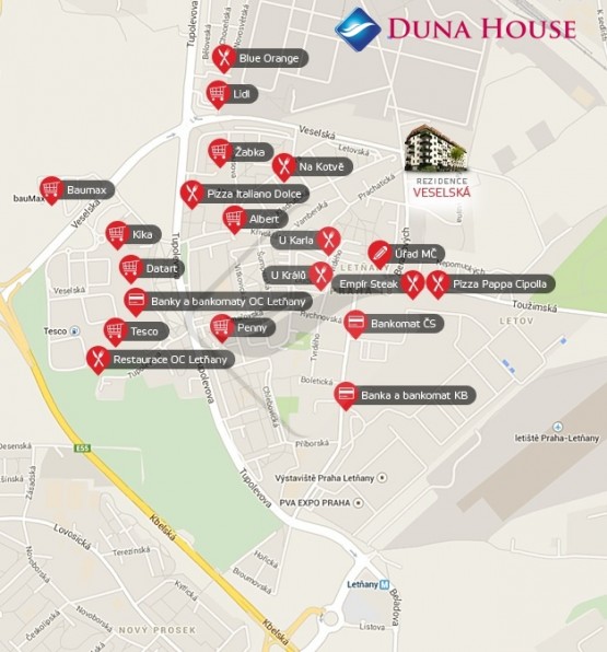V blízkosti je OC Letňany se spoustou obchodů a různých služeb, hypermarket Tesco a Kika nábytek hned vedle.