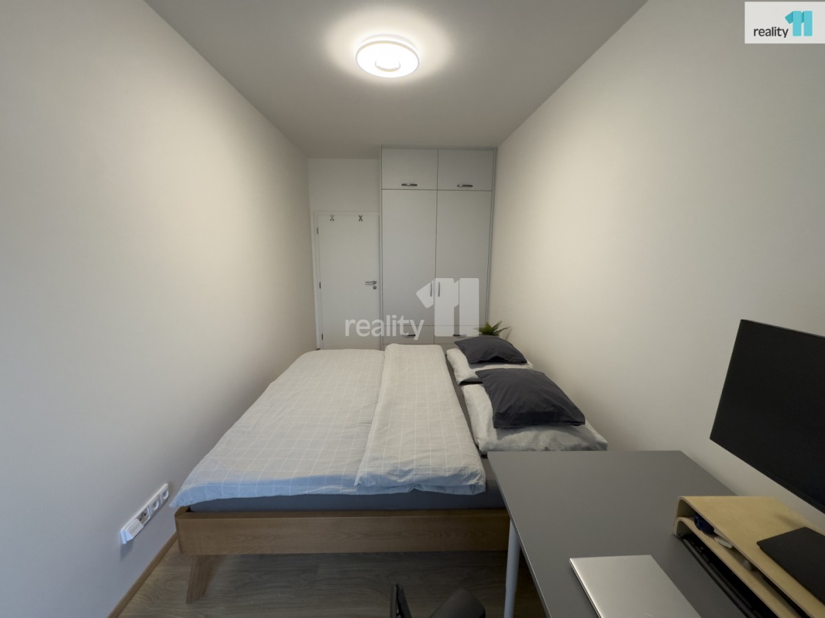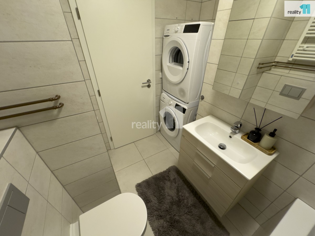 Minimalistický interiér bytu podtrhuje elegantní a nadčasový design kuchyňského koutu. Byt má plastová okna, vinylové podlahy a v chodbě velké množství úložných prostor na míru (vestavěné skříně jsou z roku 2022). Moderní kuchyňská linka je vybavena vestavěnými spotřebiči.