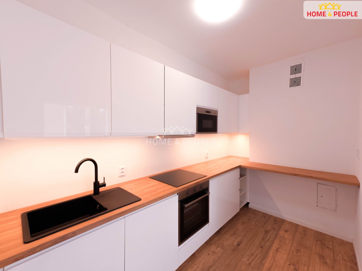 Byt prošel kompletní rekonstrukcí – nové rozvody vody a elektřiny, moderní kuchyňská linka IKEA s vestavěnými spotřebiči (elektrická trouba, varná deska, myčka a mikrovlnná trouba) a pětiletou zárukou.