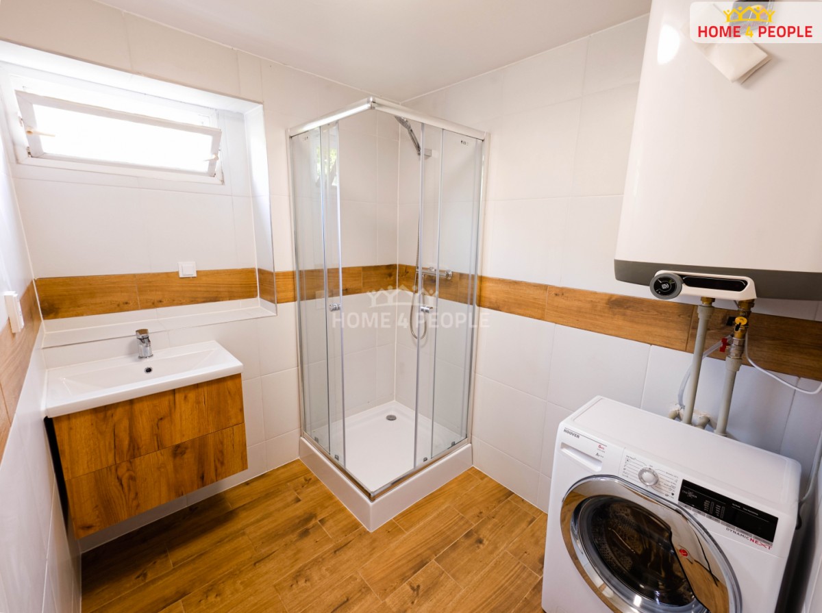 Součástí bytu je světlý obývací pokoj s kuchyňským koutem a útulná ložnice. Koupelna je vybavena sprchovým koutem a oddělenou toaletou. Z obývacího pokoje vede přímý vstup na prostornou terasu o velikosti 12 m², která nabízí příjemné posezení a zároveň možnost budoucí výstavby zimní zahrady, díky níž lze obytnou plochu rozšířit o další místnost. K bytu náleží také dvě parkovací místa (na základě sousedské dohody).