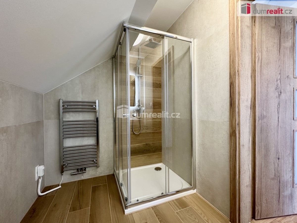 Dumrealit. cz Vám nabízí prodej apartmánů na náměstí Sv. Vavřince v Horní Blatné, které se nachází v blízkosti několika lyžařských areálů jako je Plešivec, Potůčky nebo Klínovec. Apartmán číslo 12. se nachází v podkrovní... části domu a je o velikosti 51, 2 m² s orientací do tří stran včetně výhledu na náměstí a kostel Sv. Vavřince. Dispozice bytu 2+KK. Všechny apartmány jsou vybaveny sanitární keramikou v koupelnách, sprchovým koutem Walk - in, podlahovou krytinou a to v kombinaci velkoformátové dlažby a plovoucí podlahy v dekoru dřeva, obložkami, interiérovými a vstupními dveřmi a kompletní přípravou na osazení kuchyňské linky. Ke každému apartmánu patří jedno soukromé parkovací místo hned u domu a jedna sklepní kóje, vše je již započítáno v uvedené ceně. Součástí jsou také nádherné společné prostory a to včetně sklepního prostoru s možností posezení. Vytápění apartmánů je elektrické s dálkovým ovládáním s připojením na Wi - Fi. V apartmánovém domě se nachází 12 jednotek od 1+KK až po 3+KK různých podlahových výměr. Dva apartmány jsou v rezervaci. Izolant obvodových stěn 16 - 18cm polystyrenové dílce a 28cm minerální vlna v podkrovní části domu. Nemovitost se nachází přímo na náměstí s výhledem na hory a kostel Sv. Vavřince. Koupě apartmánu je ideální také jako investice, kdy jsou Krušné hory celoročně navštěvovány turisty a Horní Blatná patří svým umístěním mezi nejvíce vyhledávané. V blízkosti apartmánu se nachází Blatenský vrch, Vlčí jámy a mnoho turistických a cyklo tras. Doporučuji nezávaznou prohlídku objektu s možností vybrat si právě ten VÁŠ apartmán. Ev. číslo: 650390. Energetický štítek: F