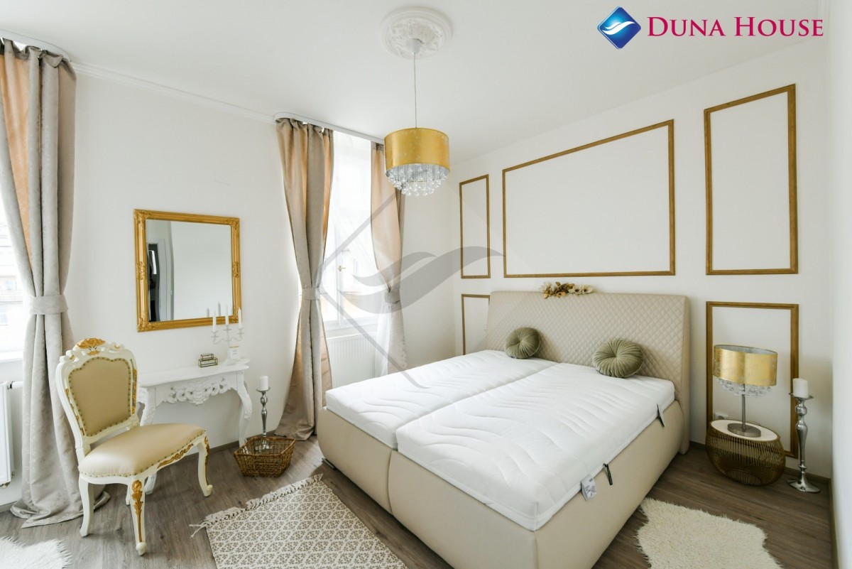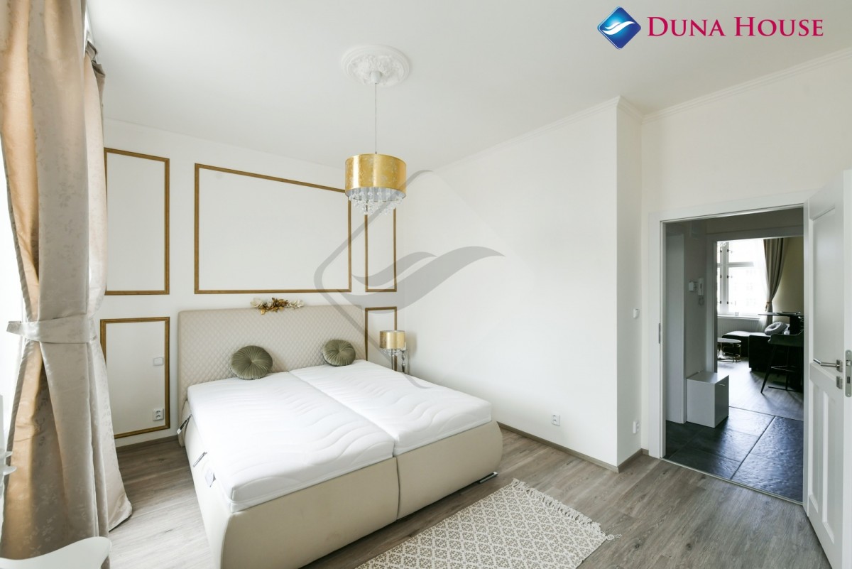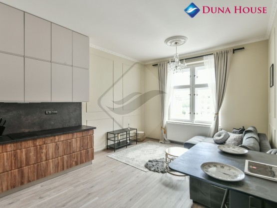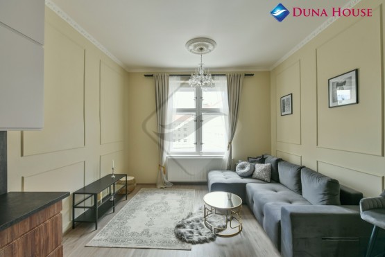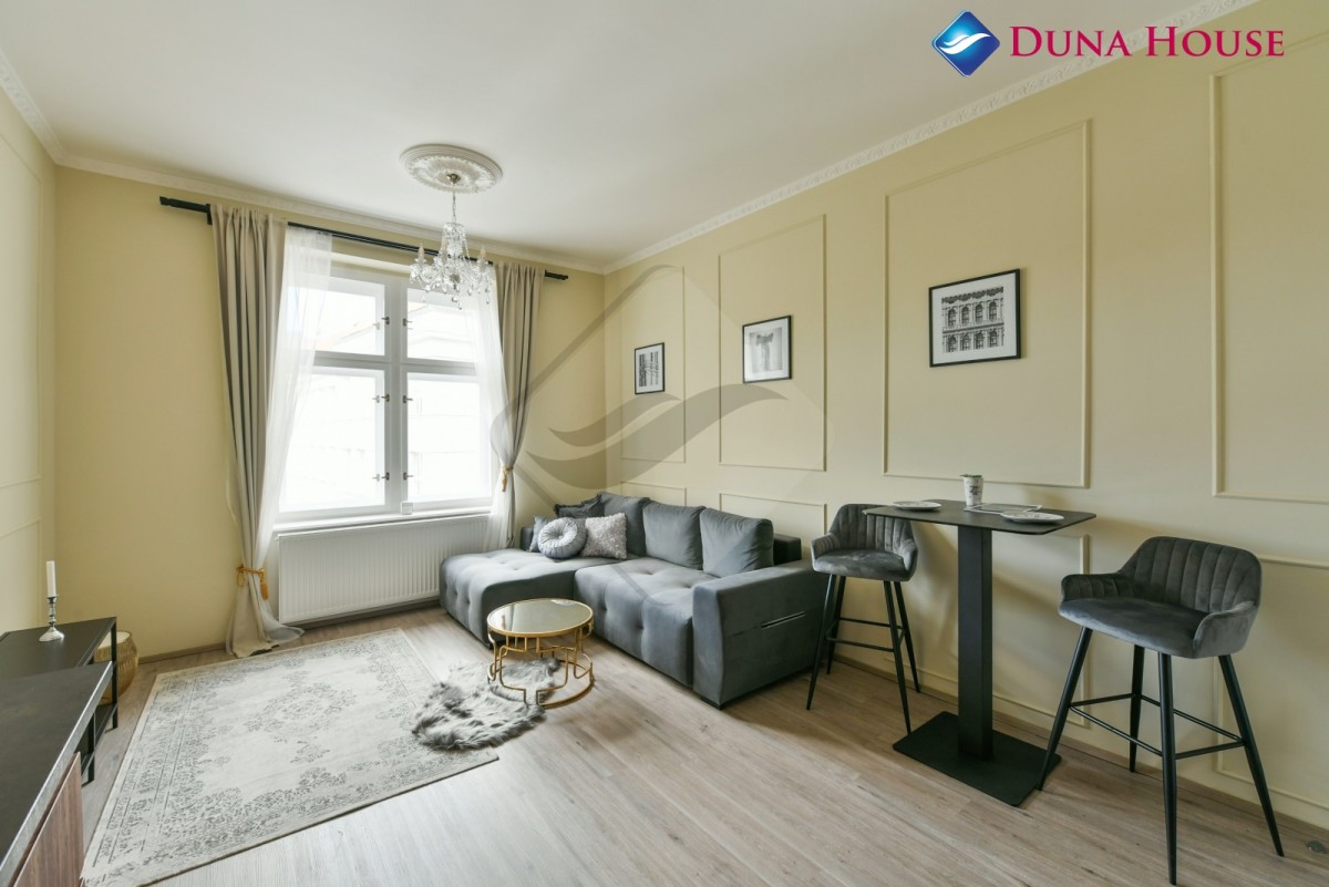 Dispozice bytu: obývací pokoj s kuchyňským koutem, ložnice, koupelna s sociální zařízení WC a předsíň. K bytu náleží sklepní kóje. Byt prošel velice nákladnou luxusní rekonstrukcí a prodává se kompletně zařízený a vybavený. Kuchyňská linka je vybavena vestavěnými spotřebiči - lednice, mrazák, myčka, varná deska, trouba, digestoř. Celý byt disponuje nábytkem zhotoveným na míru. Vytápění bytu je řešeno vlastním plynovým kotlem. Orientace bytu je na západ a východ, s částečným výhledem na Vltavu.