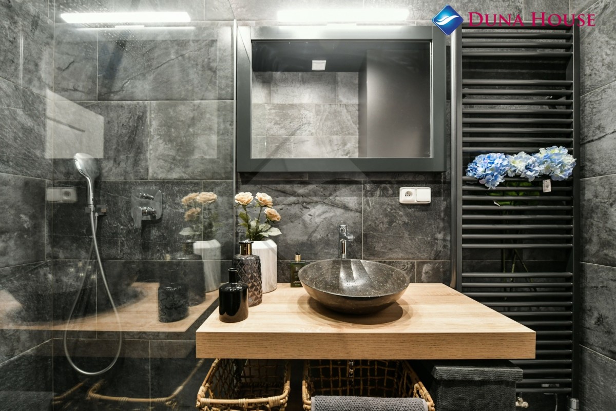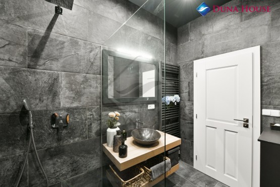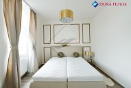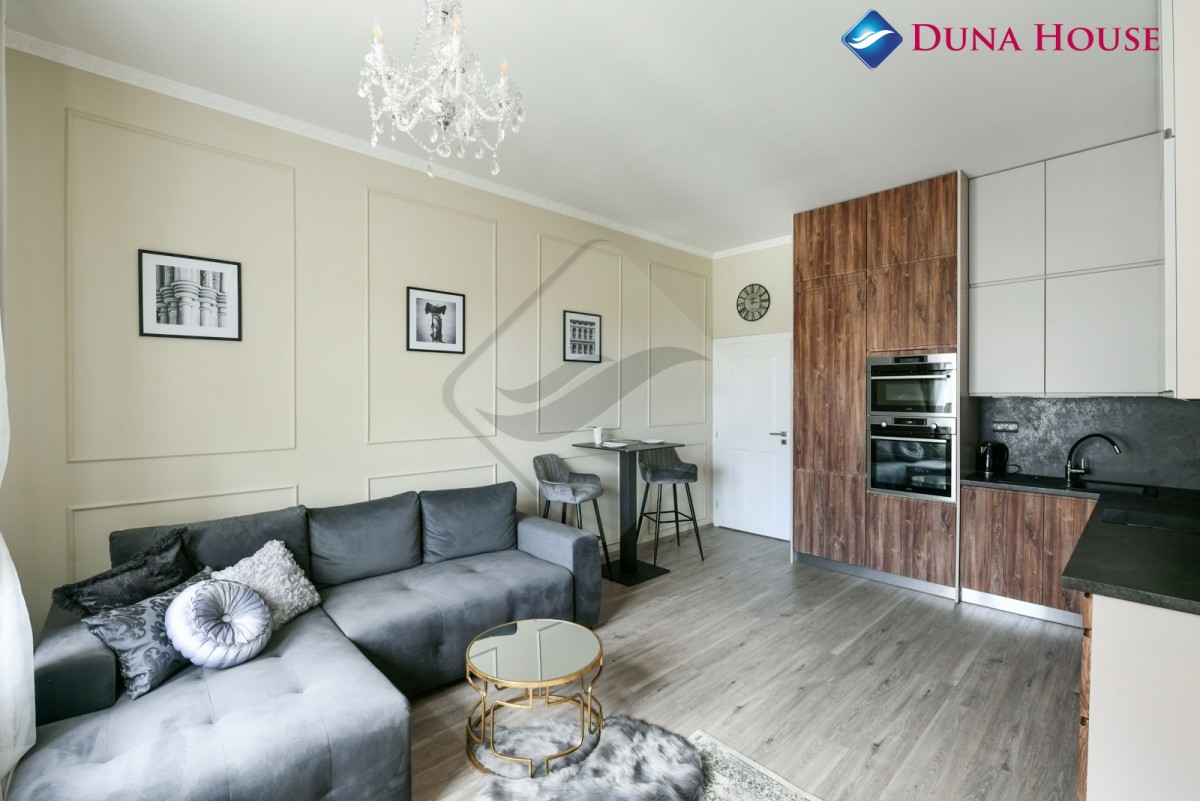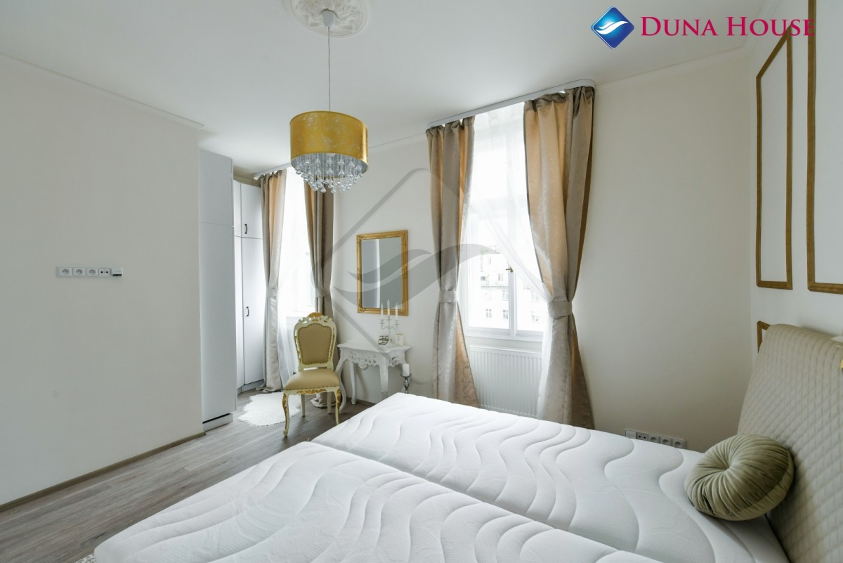 Dispozice bytu: obývací pokoj s kuchyňským koutem, ložnice, koupelna s sociální zařízení WC a předsíň. K bytu náleží sklepní kóje. Byt prošel velice nákladnou luxusní rekonstrukcí a prodává se kompletně zařízený a vybavený. Kuchyňská linka je vybavena vestavěnými spotřebiči - lednice, mrazák, myčka, varná deska, trouba, digestoř. Celý byt disponuje nábytkem zhotoveným na míru. Vytápění bytu je řešeno vlastním plynovým kotlem. Orientace bytu je na západ a východ, s částečným výhledem na Vltavu.