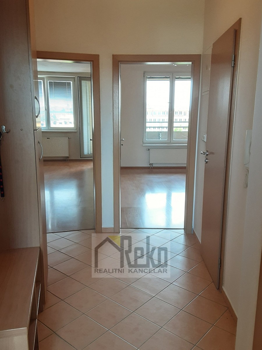 Byt. jednotka je umíst...ěna v 4. NP (čtvrté nadzemní patro) s dvěma výtahy. Po vstupu do bytu se v chodbě nachází odkládací stěna, s přístupem do jednotlivých místností. Obývací pokoj je propojen s kuchyňským koutem, ve kterém je instalována kuchyňská linka se spotřebiči a je zde vchod na lodžii s moc hezkým výhledem do parku a na polikliniku. V ložnici se nachází vestavěná skříň. V koupelně je sprchový kout, místo pro umístění automatické pračky, umyvadlo a otopný žebřík. sociální zařízení WC zvlášť. Z chodby je také přístup do komory. Na podlahách je dlažba či plovoucí podlaha. Okna plastová se žaluziemi. K bytu náleží označené garážové parkovací stání v 2. PP. Jedná se o velice pěkný byt s veškerou občanskou infrastrukturou. Lze financovat úvěrem, se kterým vám rádi pomůžeme.