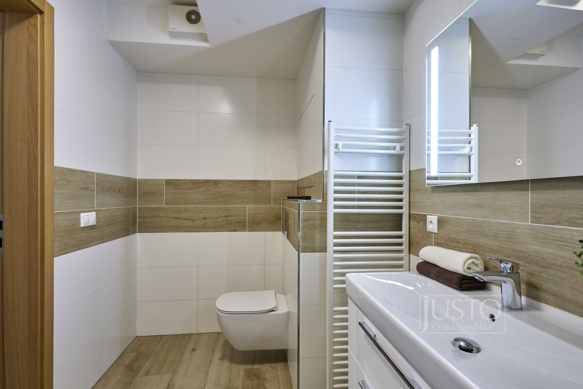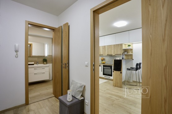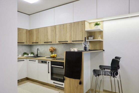 Byt ...se nachází ve 2. nadzemním podlaží moc hezkého pětipodlažního zděného bytového domu z roku 2019. Majitel byt vybavil kuchyní i nábytkem vyrobenými na míru od truhláře. Kuchyni s barem dále vybavil všemi potřebnými spotřebiči (myčka, indukční varná deska, digestoř a lednice). Dveře mají skryté panty, na podlahách je kvalitní vinylová krytina – na použitém vybavení i materiálech majitel nešetřil.