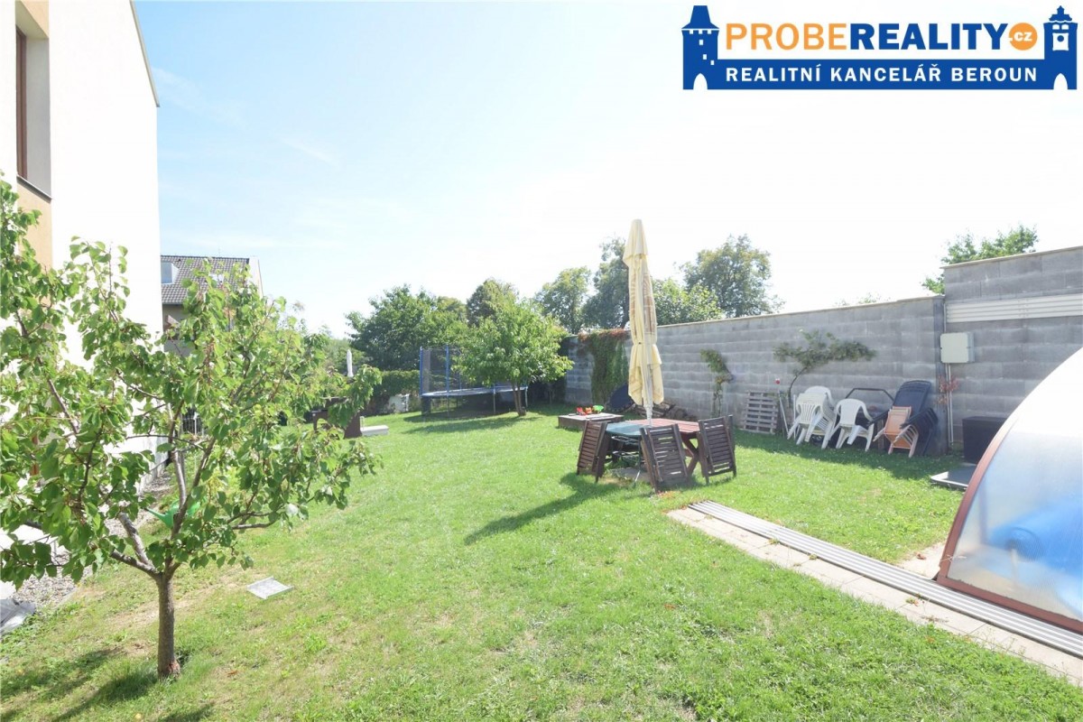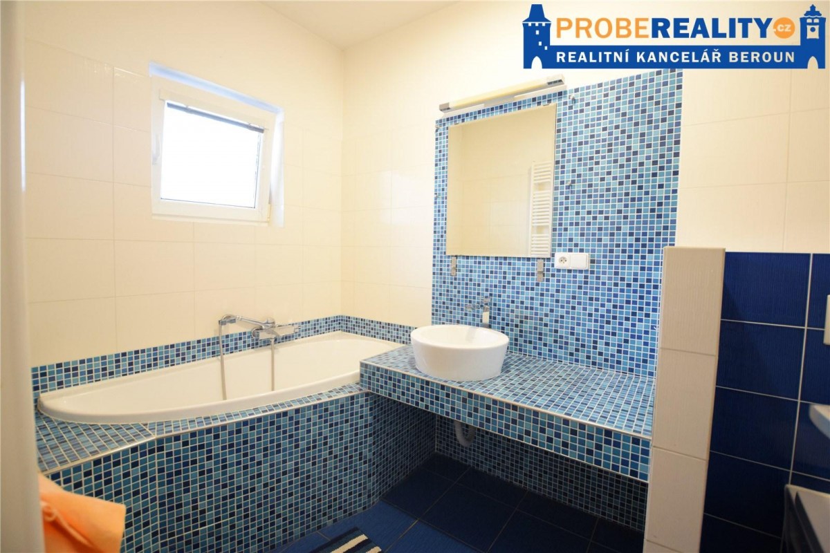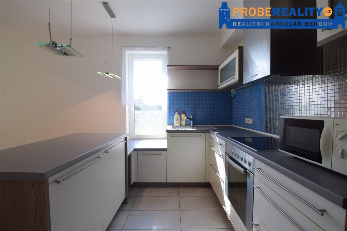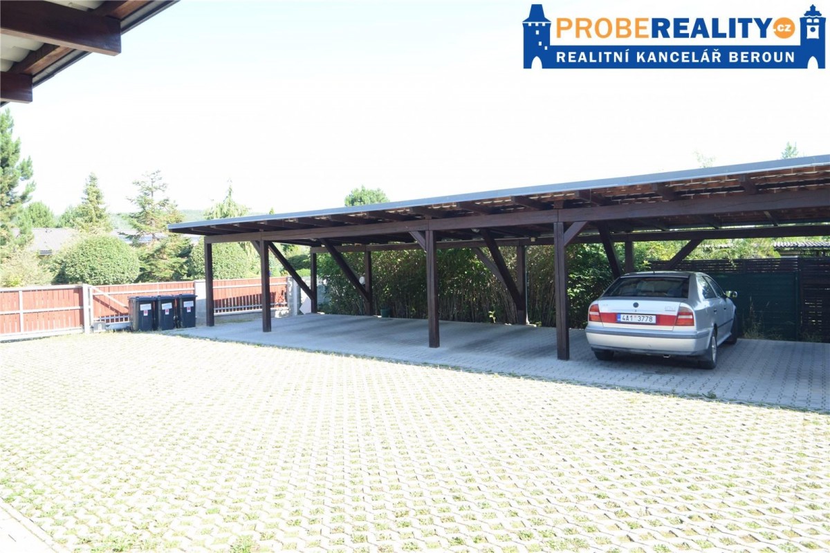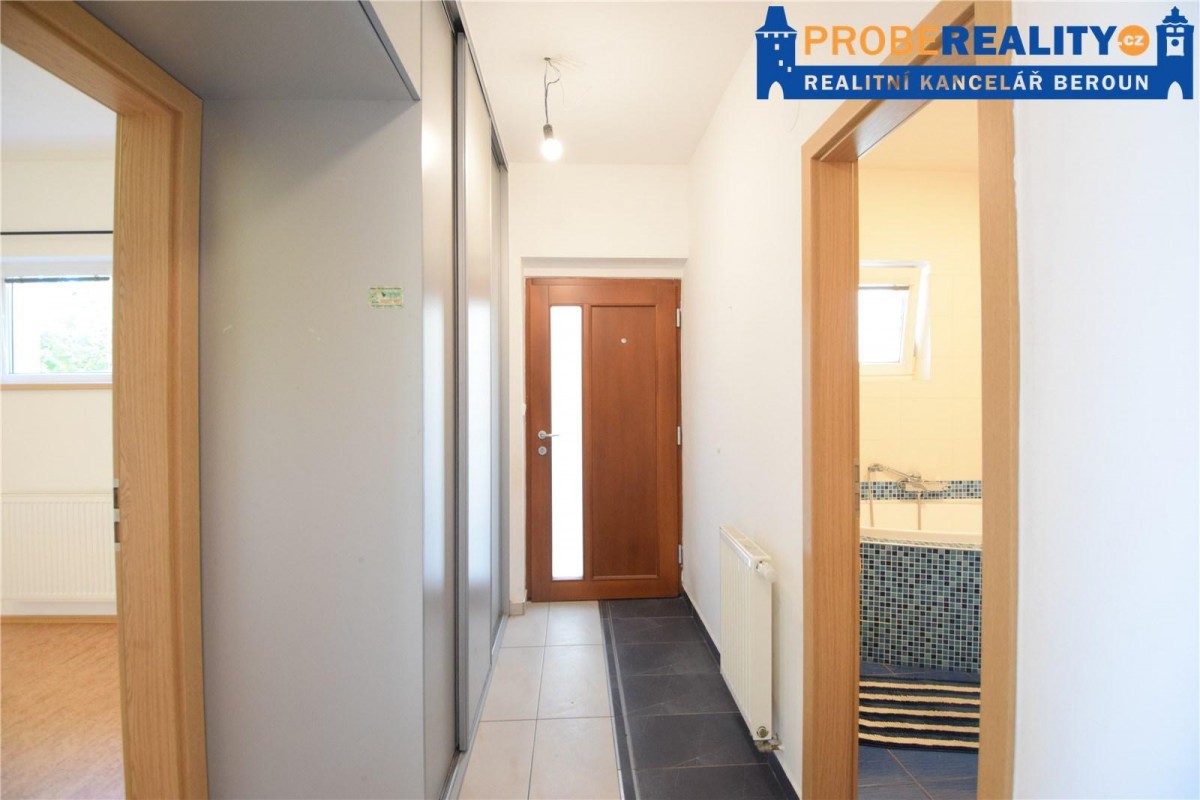 Jedná se o přízemní rohový byt, který je možné využívat jako bezbariérový. Koupelna je vybavená rohovou vanou a sociální zařízení WC. Kuchyňská linka je na míru. Jako podlahová krytina jsou použity parketová podlaha a dlažba. O dostatek úložných prostor se starají vestavěné skříně na míru, které dobře využívají prostor veliké chodby. K bytu náleží i sklepní koje. Na společném pozemku je k dispozici i krytý bazén se slanou vodou. Velice klidná a žádaná lokalita s dostatkem soukromí a zeleně, kterou lze bez nadsázky považovat jako vstupní bránu do CHKO Brdy, které nabízejí nepřeberný prostor pro nádherné vycházky a vyjížďky na kole, do panenské přírody. Veškerá občanská vybavenost je v místě. Výborná dostupnost do Prahy cca 10. min.