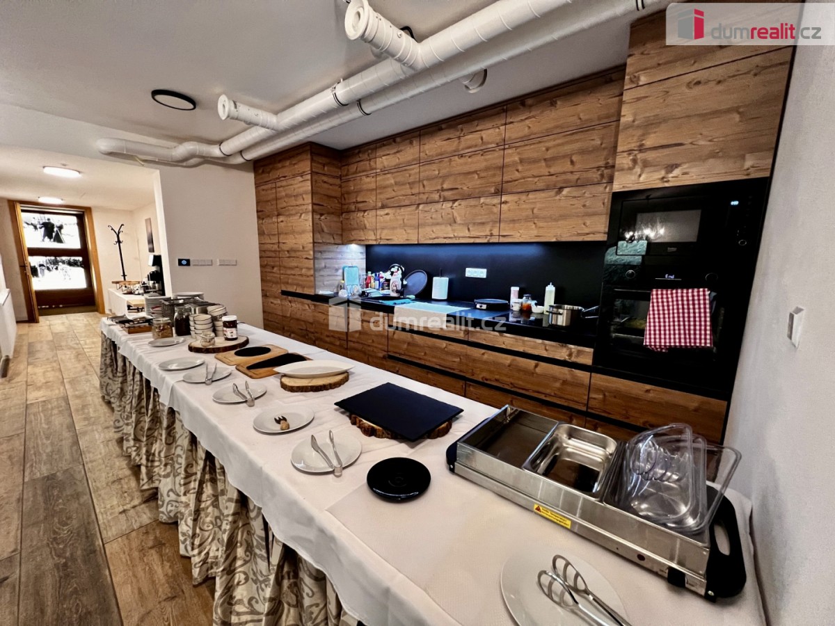 Přímo v budově je k dispozici dvoupodlažní wellness se saunovým světem a servisované snídaňové prostory, což výrazně zvyšuje atraktivitu apartmánu na rezervačních portálech a umožňuje dosahovat nadstandardních cen za noc.