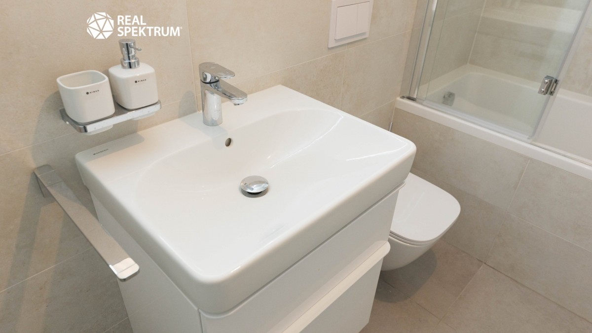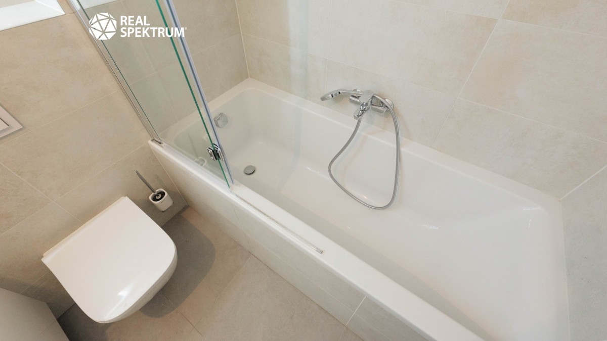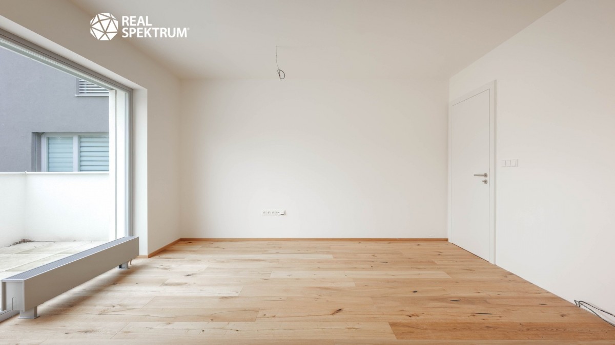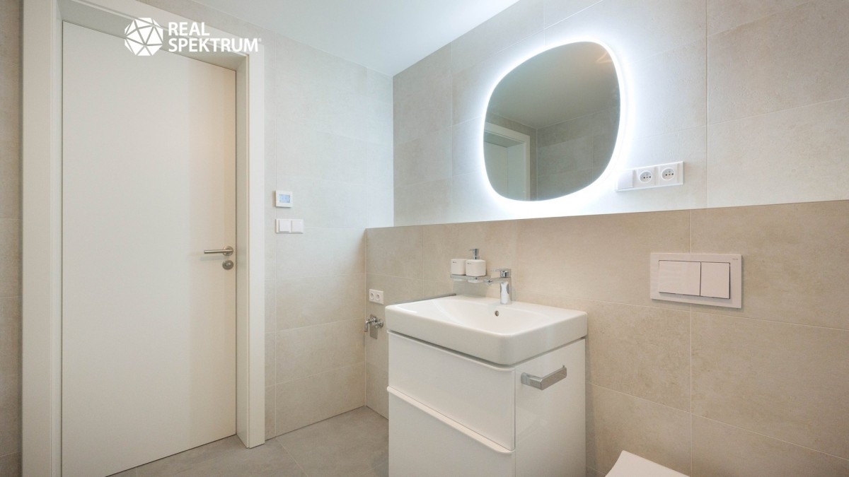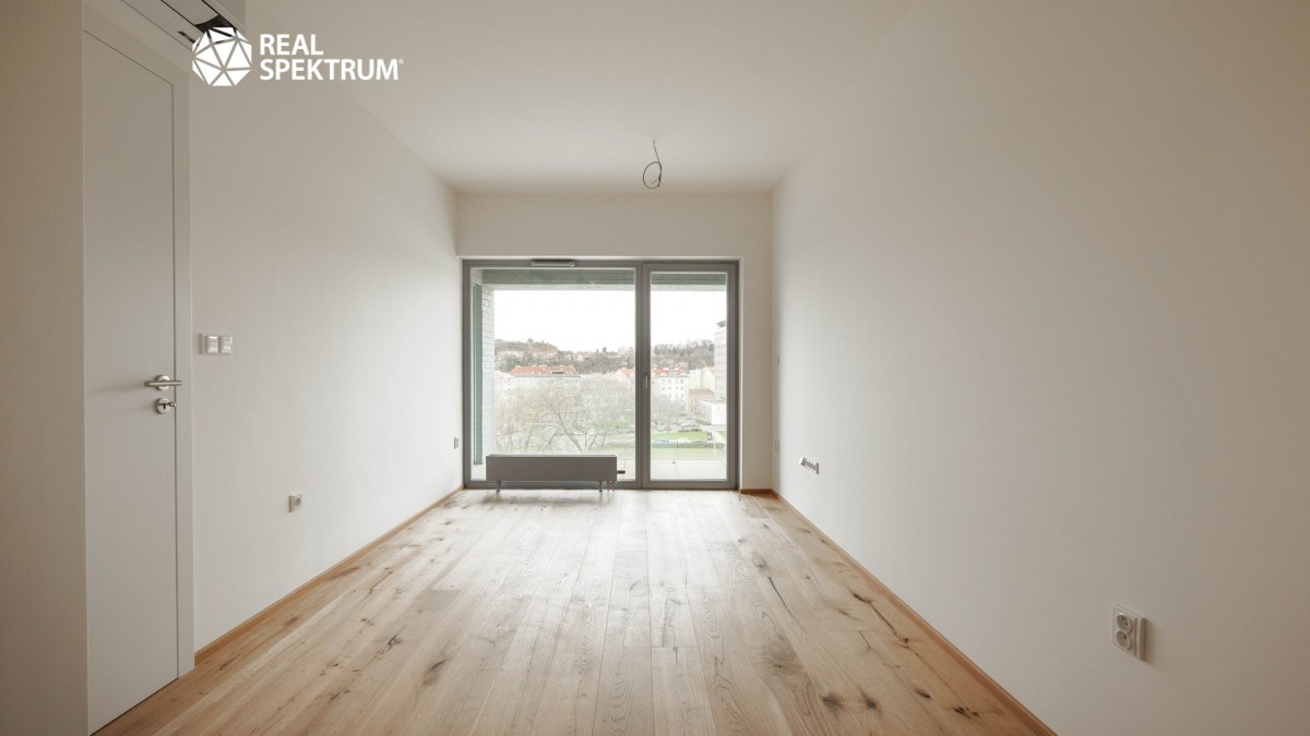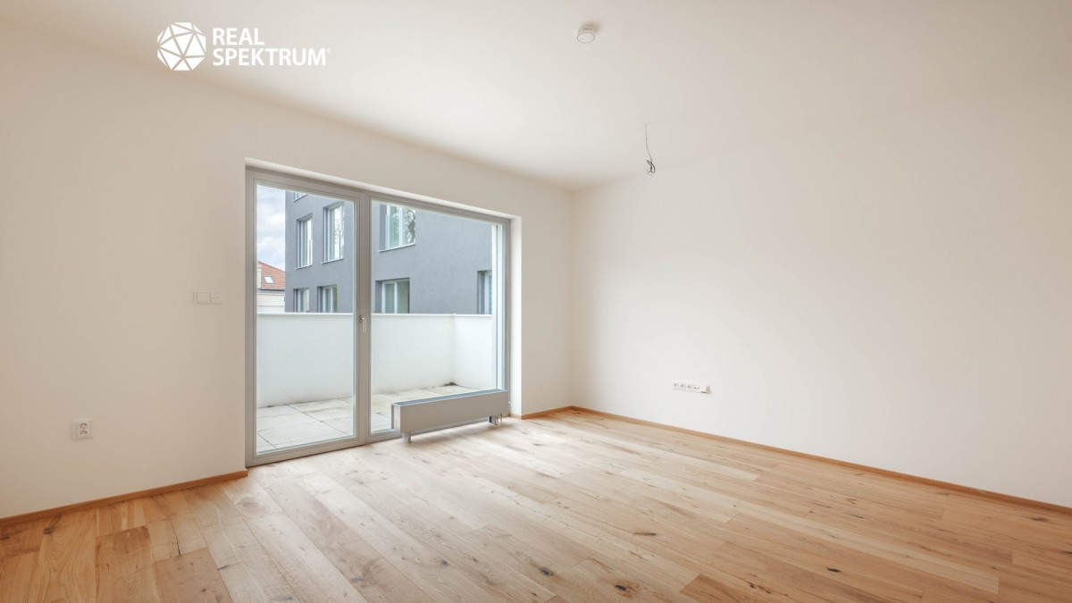 Byt je dokončený ve vysokém standardu s přípravou pro kuchyňský kout, což umožňuje novému majiteli zvolit si vybavení přesně podle svých představ.
