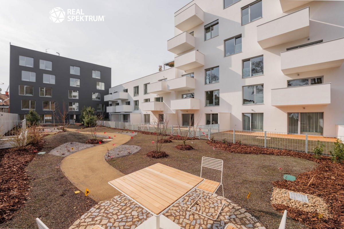 Rezidentům domu je k dispozici také společná kočárkárna a uzavřený vnitroblok se zelení, určený výhradně pro obyvatele domu.