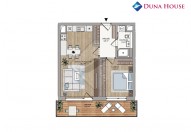 Sestává z již zmiňované vstupní předsíně s úložnými prostory, dále koupelnou se sprchovým koutem, pračkou a toaletou, ložnicí a prostorným obývacím pokojem s novým kuchyňským koutem a vstupem na balkon orientovaný na příjemný J, čímž bude jednotka příjemně prosvětlená a má moc hezký výhled do zeleně na park.