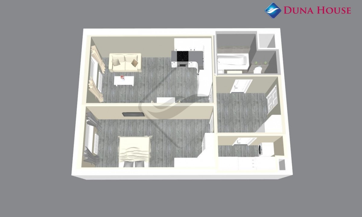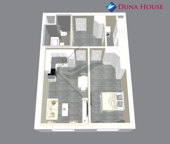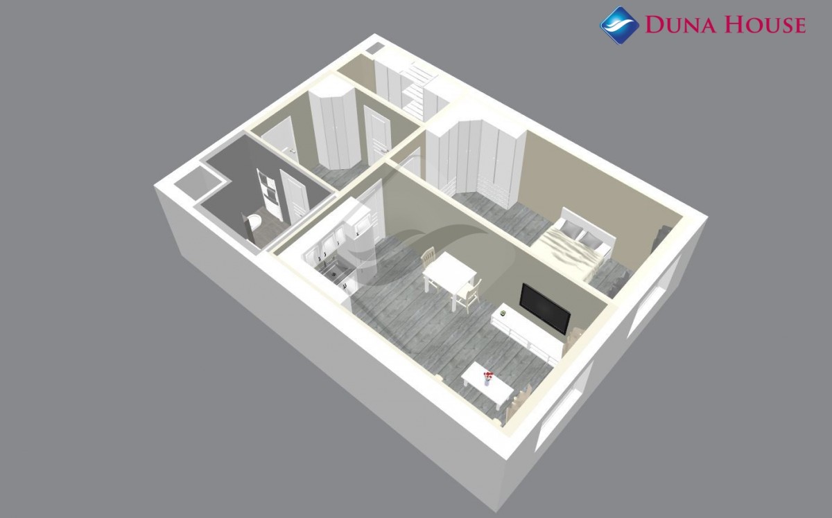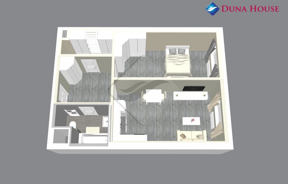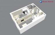 Byt bude sestávat z prostorné vstupní předsíně s místem pro úložný prostor, z koupelny s vanou a toaletou, komory, ložnice orientované na Z a prostorného obývacího pokoje s kuchyňským koutem taktéž na Z.