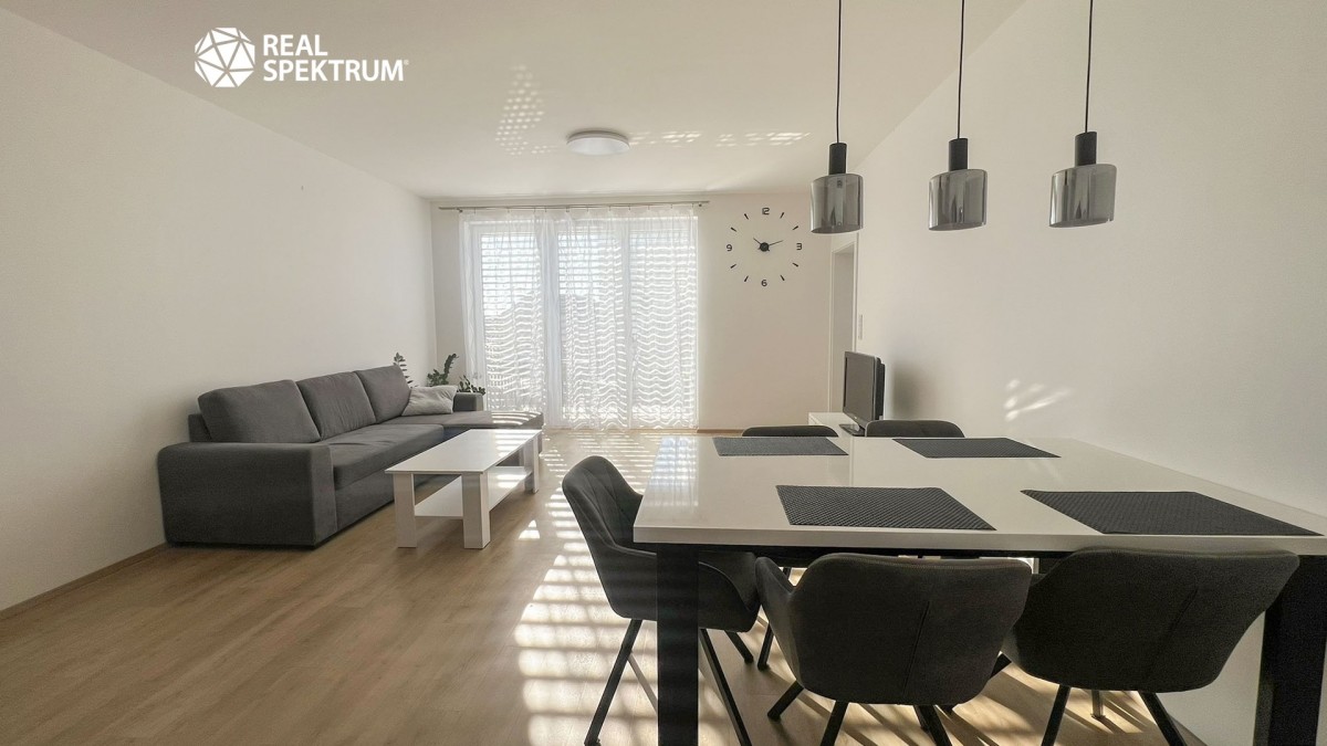 Dispozice bytu: vstup (4, 1 m²), obývací pokoj s kuchyňským koutem ( 31 m²) a vstupem na balkon (4, 1 m²), ložnice (13, 5 m²), koupelna s sociální zařízení WC (4, 6 m²)