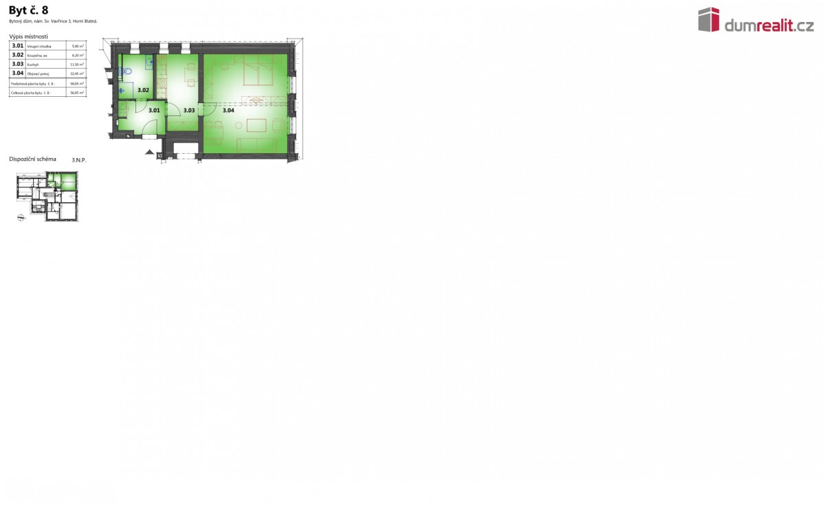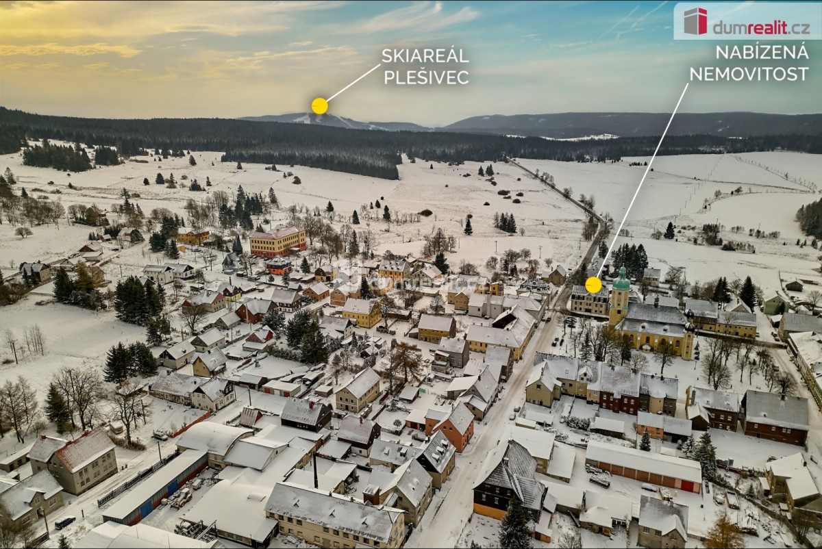 Dumrealit. cz Vám nabízí prodej apartmánů na náměstí Sv. Vavřince v Horní Blatné, které se nachází v blízkosti několika lyžařských areálů jako je Plešivec, Potůčky nebo Klínovec. Apartmán číslo 8. se nachází ve druhém pa...tře, je o velikosti 56 m² s výhledem na náměstí a kostel Sv. Vavřince. Dispozice bytu 2+KK. Všechny apartmány jsou vybaveny sanitární keramikou v koupelnách, sprchovým koutem Walk - in, podlahovou krytinou a to v kombinaci velkoformátové dlažby a plovoucí podlahy v dekoru dřeva, obložkami, interiérovými a vstupními dveřmi a kompletní přípravou na osazení kuchyňské linky. Ke každému apartmánu patří jedno soukromé parkovací místo hned u domu a jedna sklepní kóje, vše je již započítáno v uvedené ceně. Součástí jsou také nádherné společné prostory a to včetně sklepního prostoru s možností posezení. Vytápění apartmánů je elektrické s dálkovým ovládáním s připojením na Wi - Fi. V apartmánovém domě se nachází 12 jednotek od 1+KK až po 3+KK různých podlahových výměr. Několik apartmánů je již prodáno. Izolant obvodových stěn 16 - 18cm polystyrenové dílce a 28cm minerální vlna v podkrovní části domu. Nemovitost se nachází přímo na náměstí s výhledem na hory a kostel Sv. Vavřince. Koupě apartmánu je ideální také jako investice, kdy jsou Krušné hory celoročně navštěvovány turisty a Horní Blatná patří svým umístěním mezi nejvíce vyhledávané. V blízkosti apartmánu se nachází Blatenský vrch, Vlčí jámy a mnoho turistických a cyklo tras. Nemovitost s možností odpočtu DPH z uvedené kupní ceny. Fotky se zařízením a kuchyňskou linkou jsou z referenčního bytu číslo 10. Doporučuji nezávaznou prohlídku objektu s možností vybrat si právě ten VÁŠ apartmán. Ev. číslo: 652896. Energetický štítek: F