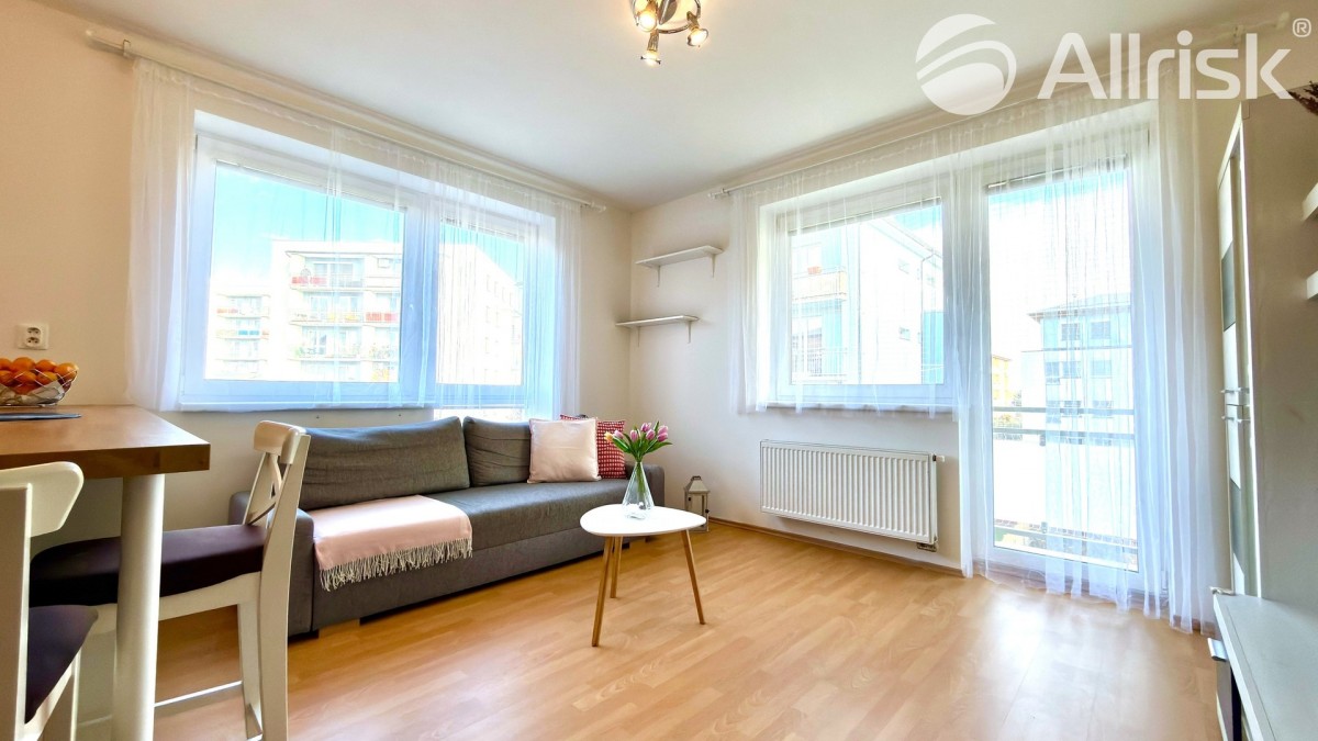 Z obývacího pokoje je přímý vstup na terasou o velikosti 5 m²,  orientovanou do klidného vnitrobloku.