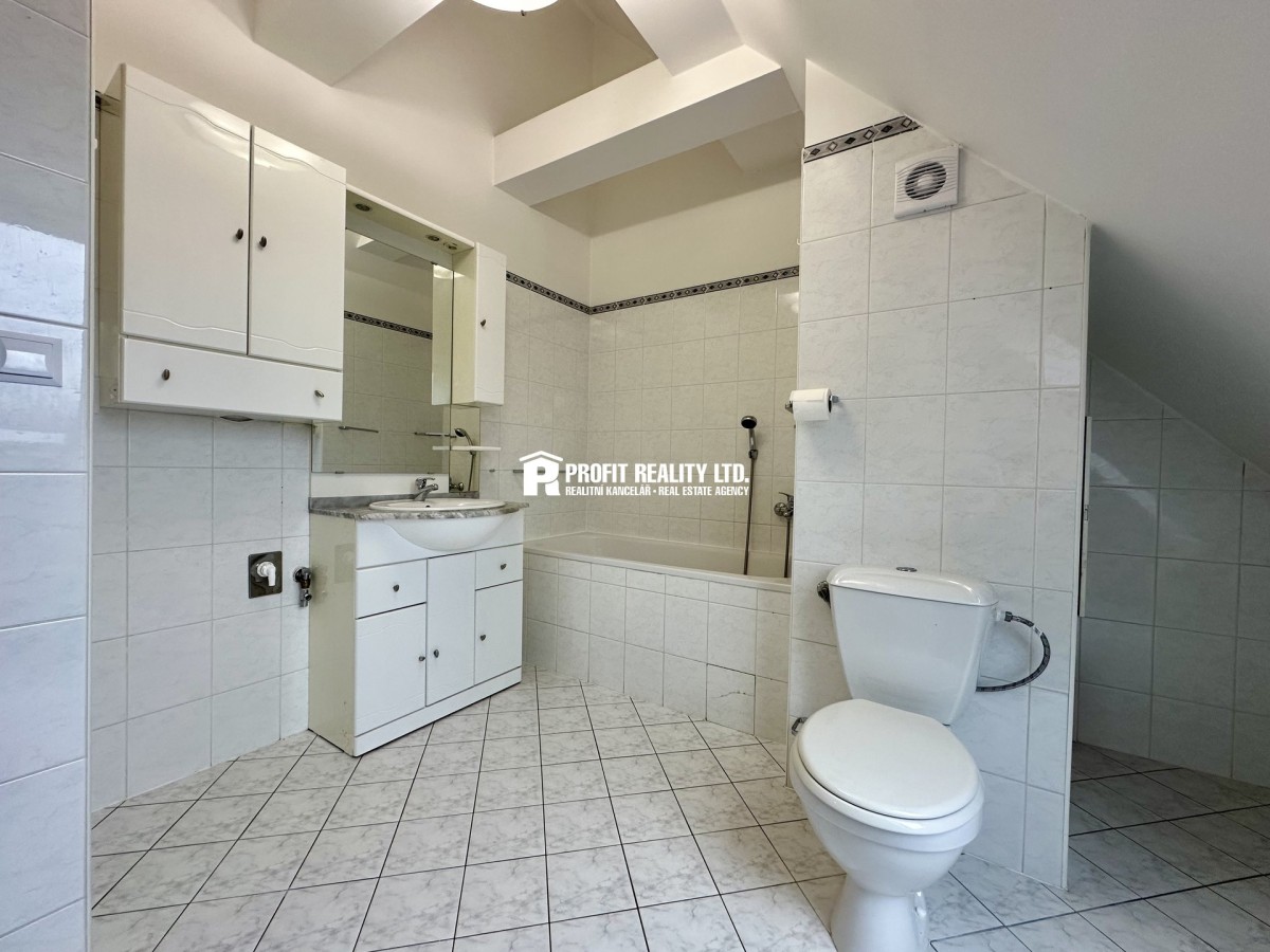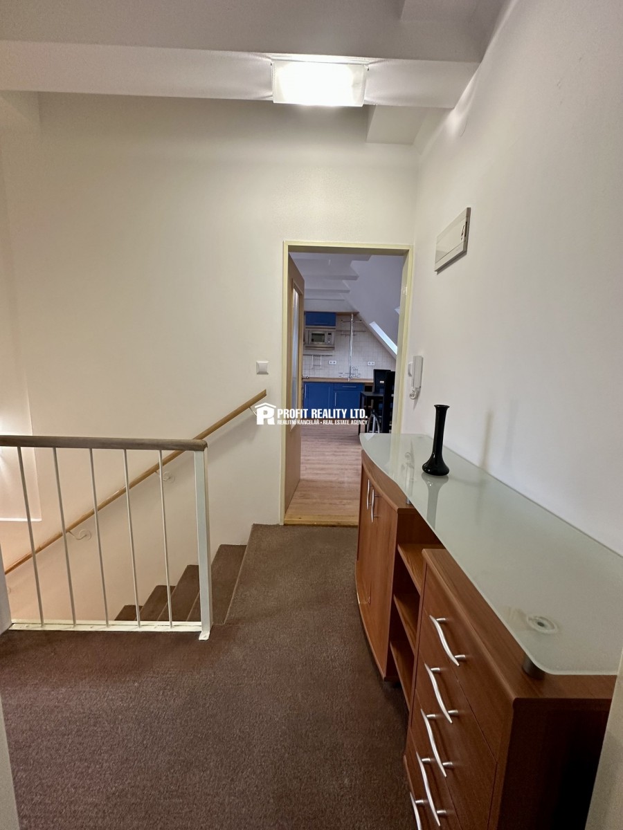 Zprostředkujeme vám prodej družstevního bytu o dispozici 2 + kuchyňský kout, který se nachází ve 4. NP (čtvrté nadzemní patro) bytového domu umístěného v historickém centru města Beroun. Výměra bytu činí 57 m2. ...Podkrovní byt se skládá ze vstupního schodiště, obývacího pokoje s kuchyňským koutem, menší ložnice ve tvaru písmene L a prostorné koupelny s vanou a toaletou. Kuchyňský kout je vybaven kuch. linkou. V ložnici je umístěna vestavná skříň. Bytový dům je ve velice dobrém technickém stavu (nový plynový kotel ve vlastní kotelně). Jedná se o družstevní vlastnictví (anuita splacena). V domě je k dispozici společná kolárna, prostor pro uložení odpadu. Velkou předností domu je udržovaná společná zahrada ve vnitrobloku, kde je možnost užívání bazénu, altánu či grilu. Dům se nachází v centru města a veškerá občanská vybavenost je v dochozí vzdálenosti. Nájezd na D5 je vzdálen 1 km.