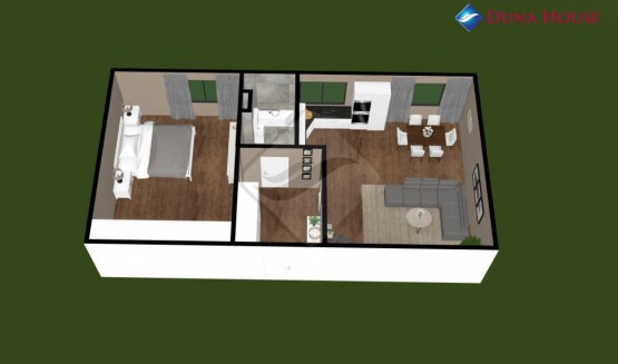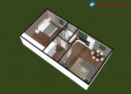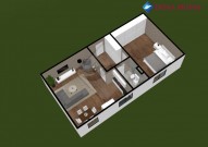 Jednotka ...bude sestávat z prostorné vstupní předsíně s místem pro úložné prostory, dále z koupelny s vanou a toaletou, ložnice a obývacího pokoje s kuchyňským koutem.