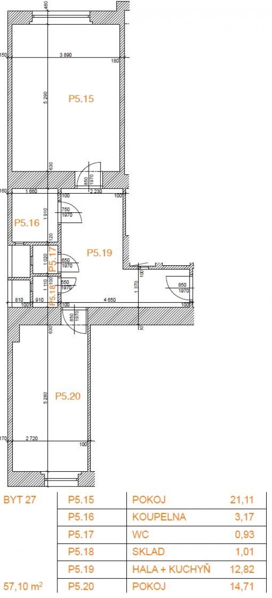 2+kk, 57 m2, cihlová, OV, 5. podlaží