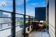 Moderní byt je zcela výjimečný díky svým velkoformátovým oknům prosvětlujícím celý interiér a terasou na západ přístupnou z obou pokojů.