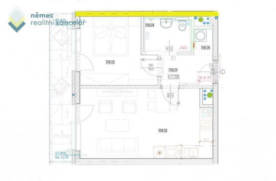 Díky podlahové ploše nebude tahle jednotka malá ani mladé rodině, ale potěší zejména náročný pár hledající ojedinělou dispozici a stylové bydlení na úrovni.