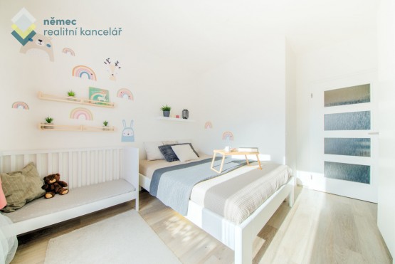 Samostatnou kapitolou je pak světlá ložnice, která je navržena pro umístění dvojlůžka, velké dvoukřídlé šatní skříně i pracovního stolu či dětské postýlky.