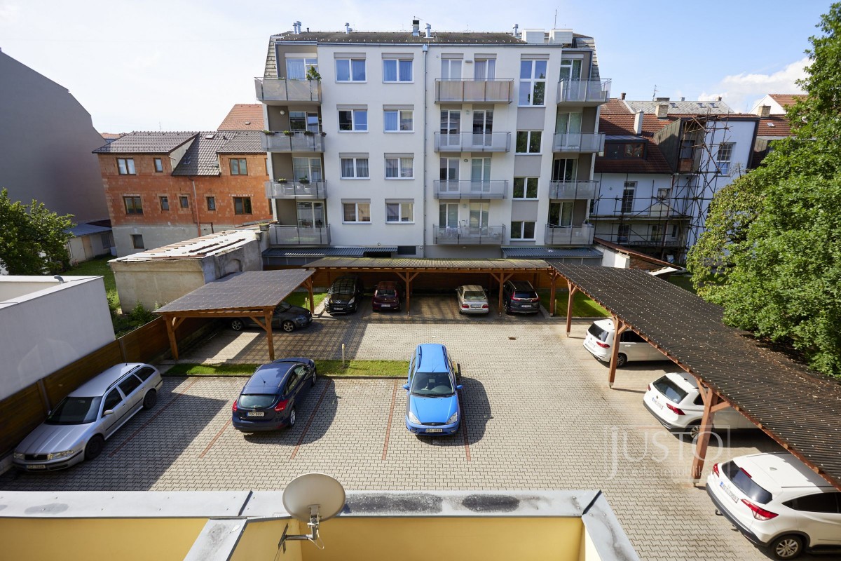 Ve vnitrobloku domu je za elektricky ovládanou vjezdovou branou z ulice dostatek parkovacích stání. Jedno z nich budete moci využívat i Vy. V domě je výtah a v kombinaci s velice dobrým, téměř bezúdržbovým stavem bytu jej tedy ocení jak mladé páry, tak důchodci hledající komfort centra města.