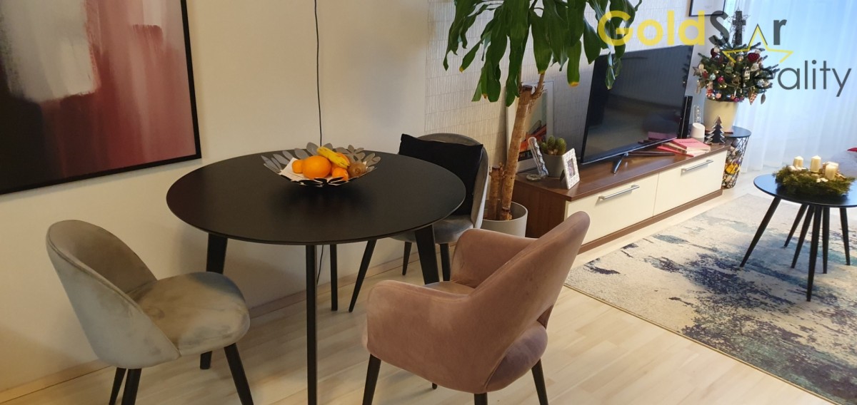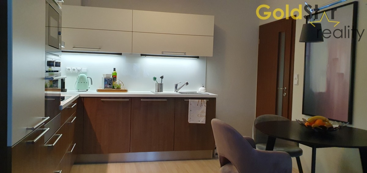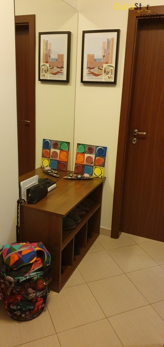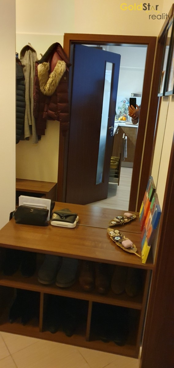 Součástí ceny je kompletní kuchyňská linka s vestavěnými spotřebiči , včetně myčky nádobí a zabudovanou lednicí s mrazákem. Vestavěná šatní skříň a volně stojící skříň v ložnici. TV skříňka v obýváku a kompletní vybavení chodby a komory, vše zakázkové od spol. Nábytek Hanák a osvětlení. V bytě jsou laminátové plovoucí podlahy. Byt celkově v moc hezkém stavu.